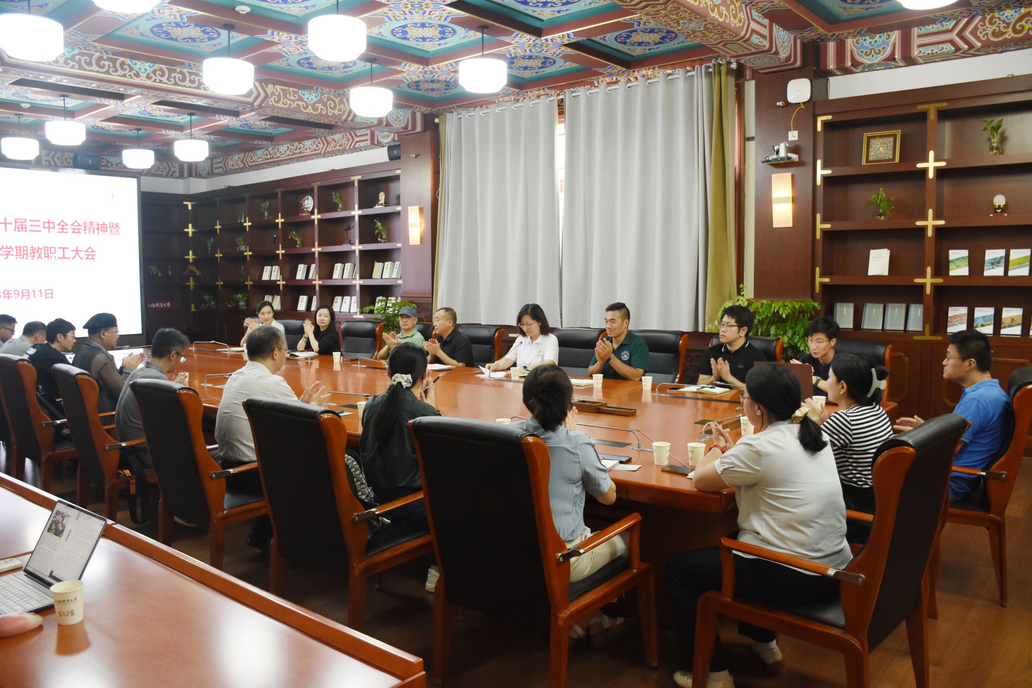 本网讯 9月11日,心理学院在绿瓦大楼第四会议室召开学习贯彻党的二十届三中全会精神暨心理学院新学期教职工大会。校党委副书记、副校长王继红,心理学院领导班子及全体教职工出席大会。大会由心理学院党总支书记梅朵主持。