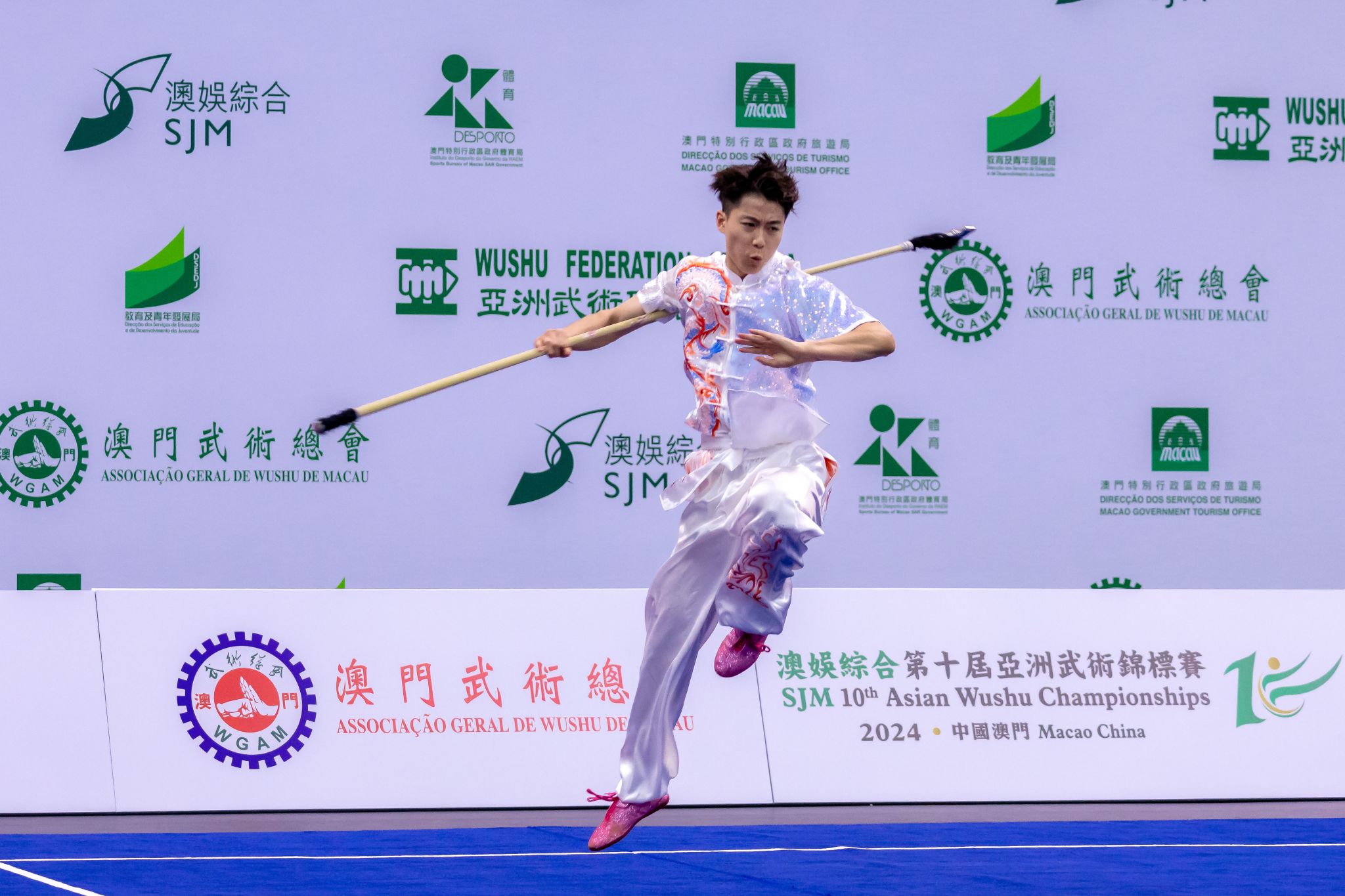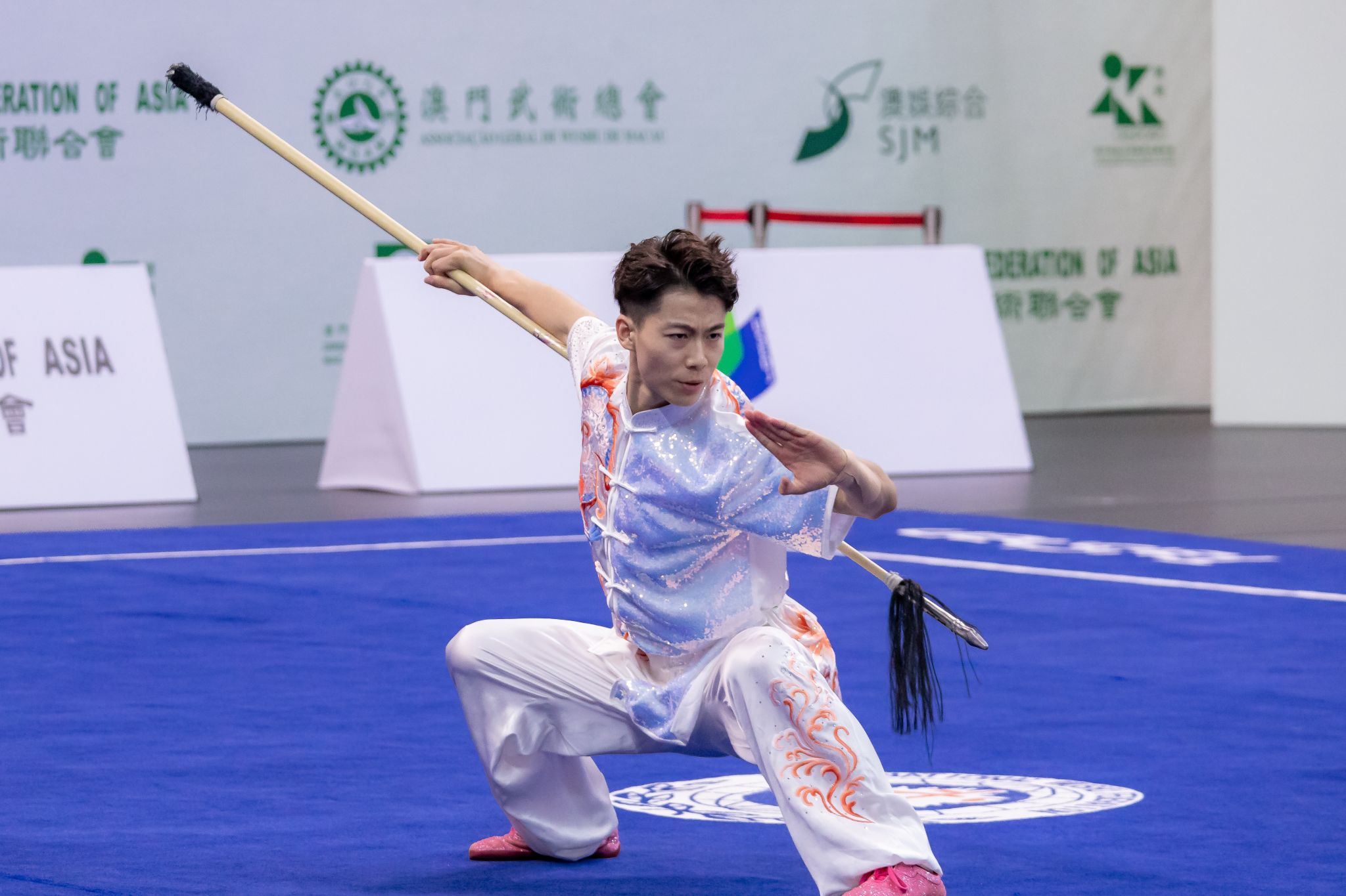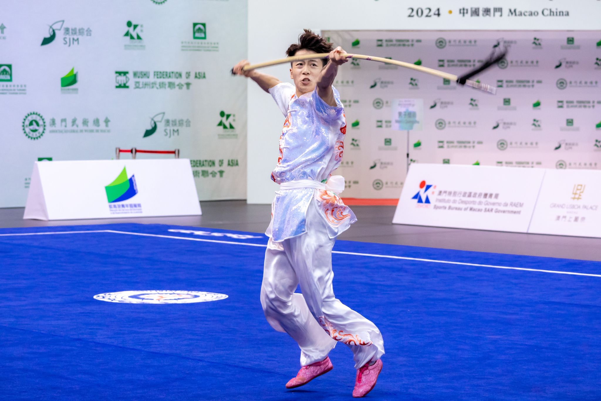 本网讯 2024年9月12日至15日,由亚洲武术联合会主办,澳门武术总会承办,澳门特别行政区政府体育局协办的2024年第十届亚洲武术锦标赛于在澳门塔石体育馆举行。亚洲武术锦标赛是亚洲地区最高水平的武术赛事之一,共有来自中国、日本、越南、马来西亚、菲律宾、伊朗、缅甸等国家和地区24支代表队286人参加本次比赛,比赛共设武术套路、武术散打两个项目共计43个小项。在9月12日首个比赛日中,我院2024级武术与民族传统体育专业本科新生许澳以卓越的表现脱颖而出,勇夺男子枪术项目的冠军。