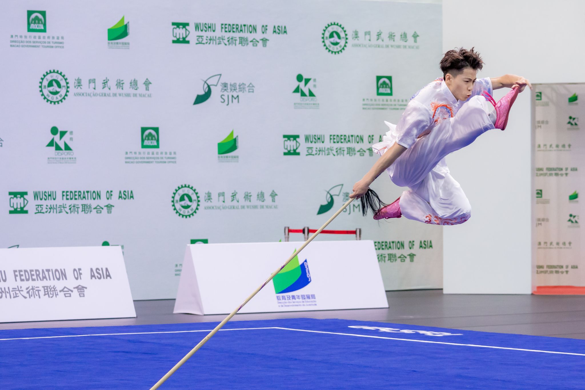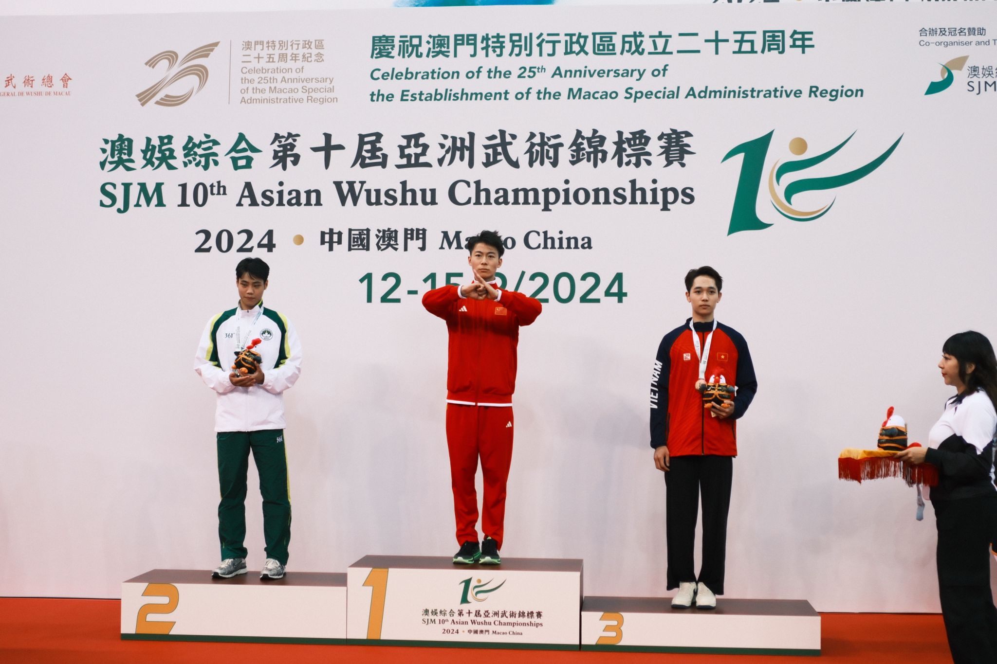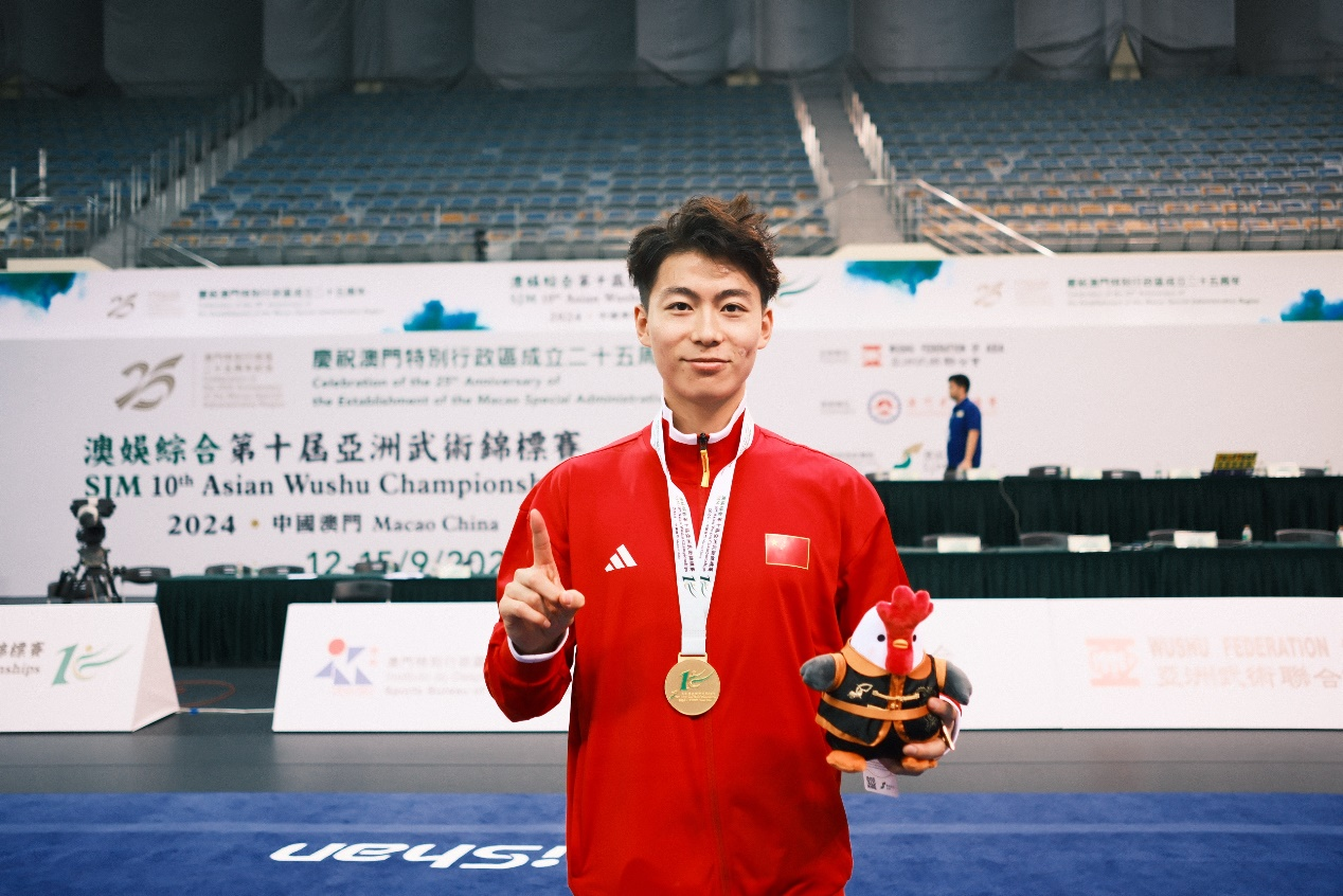本网讯 2024年9月12日至15日,由亚洲武术联合会主办,澳门武术总会承办,澳门特别行政区政府体育局协办的2024年第十届亚洲武术锦标赛于在澳门塔石体育馆举行。亚洲武术锦标赛是亚洲地区最高水平的武术赛事之一,共有来自中国、日本、越南、马来西亚、菲律宾、伊朗、缅甸等国家和地区24支代表队286人参加本次比赛,比赛共设武术套路、武术散打两个项目共计43个小项。在9月12日首个比赛日中,我院2024级武术与民族传统体育专业本科新生许澳以卓越的表现脱颖而出,勇夺男子枪术项目的冠军。