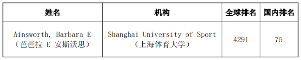 本网讯 近日,美国斯坦福大学(Stanford University)联合爱思唯尔(Elsevier)发布了2024全球前2%顶尖科学家榜单(World's Top 2% Scientists 2024)。我校4位学者(5人次)入选该榜单,其中芭芭拉 E 安斯沃思教授入选“终身科学影响力排行榜(1960-2024)”,位列中国研究机构入选学者的第75位,且同时入选“2024年度科学影响力排行榜”。此外,我校陈佩杰教授、方娴副研究员、郭亮教授入选“2024年度科学影响力排行榜”。我校4位学者的入选,体现了我校学者严谨的治学态度及其在全球体育科学研究领域的影响力,将进一步积极激励与支撑我校中国特色世界一流体育大学的建设。