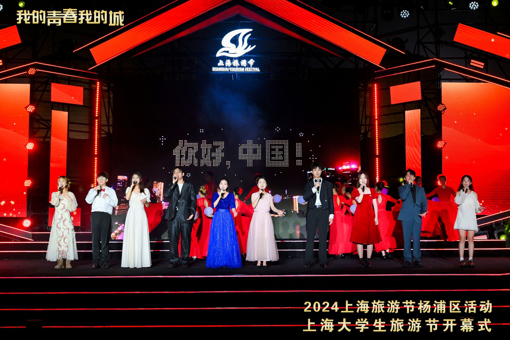 演出最后,校园歌手吴佩恩与来自上海其他多所高校的同学们共同演绎青春快闪合唱《我和我的祖国》,用动人的歌声祝福祖国母亲75周年生日快乐,并喜迎上海大学生旅游节的开幕。