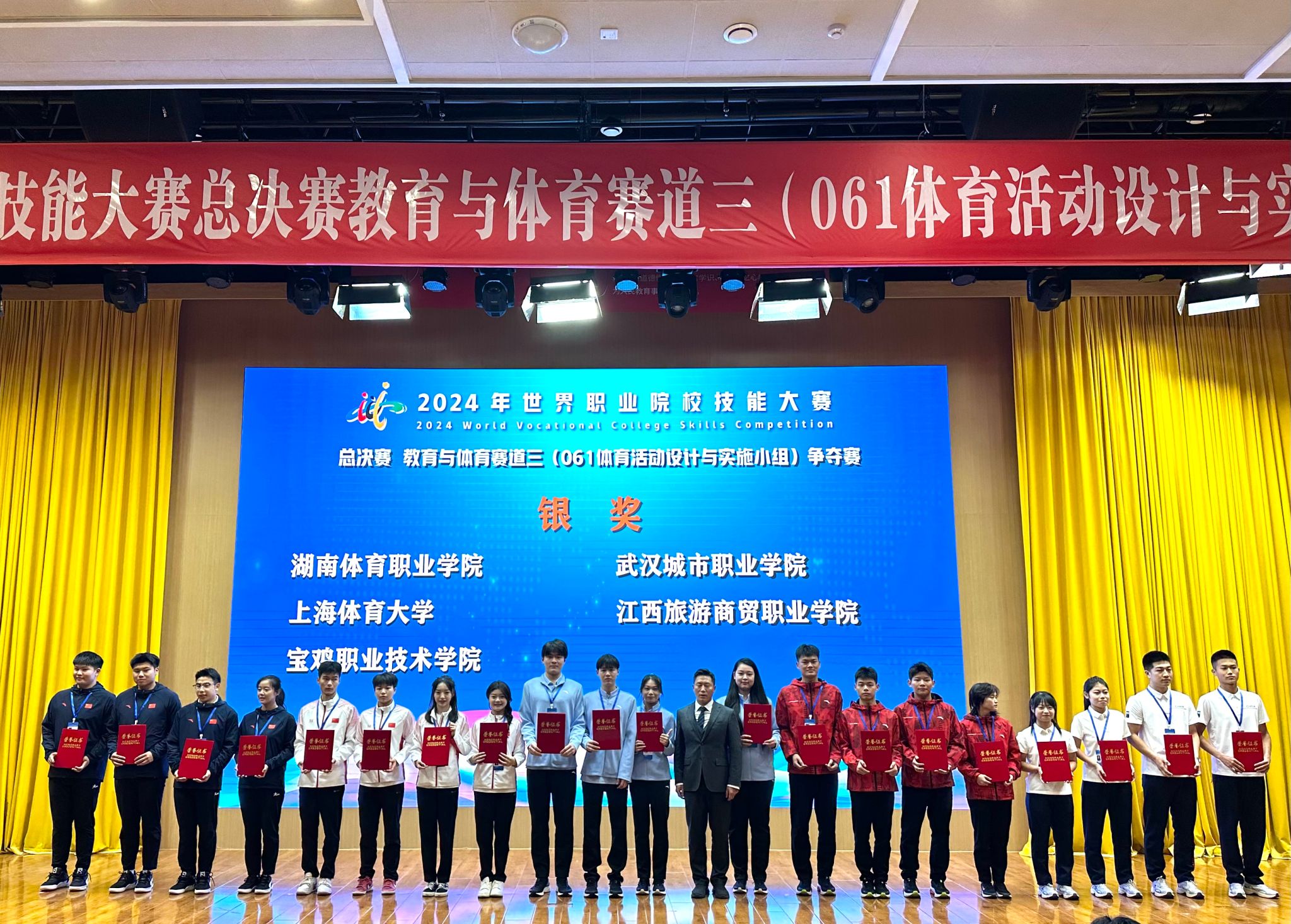 本网讯 10月22日至25日,2024年世界职业院校技能大赛总决赛教育与体育赛道三体育活动设计与实施赛项争夺赛在日照职业技术学院举行。来自全国29个省、市、自治区的53支代表队、200余名选手同场竞技,展示体育职业技能与风采。我校高职学生代表队以上海市赛第一的成绩,代表上海市高职院校参加本次比赛。同学们团结协作、顽强拼搏,经过激烈角逐,最终夺得银奖。