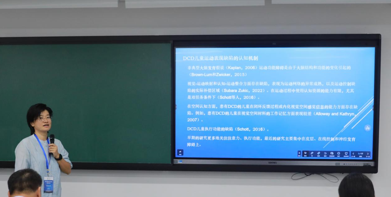 来自上海健康医学院的纪之光则从运动干预的视角,探讨了运动技能的联系对发育性运动协调障碍儿童认知能力的提升,提出了基于现有体育课程有效干预发育性协调障碍的方案。