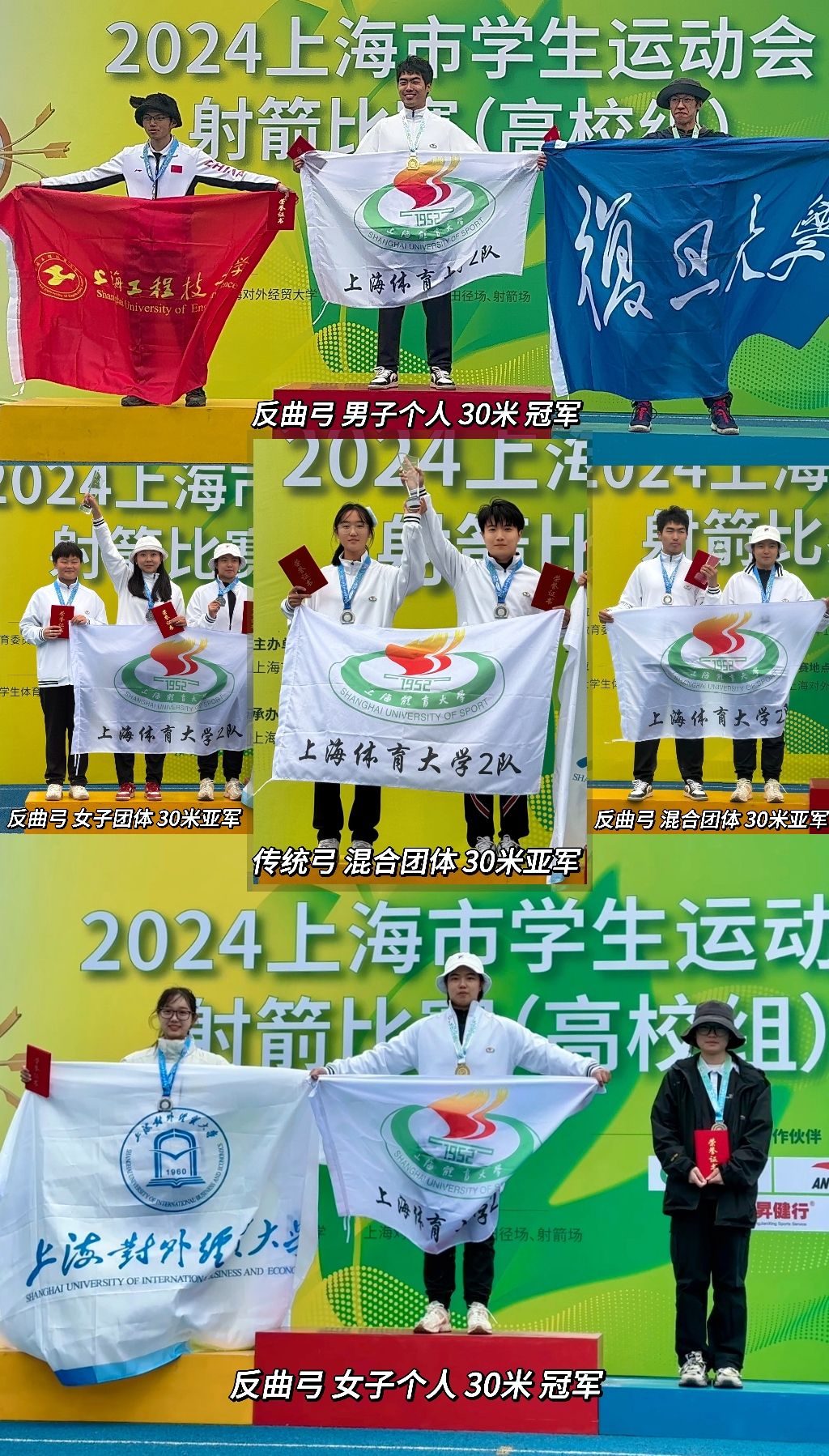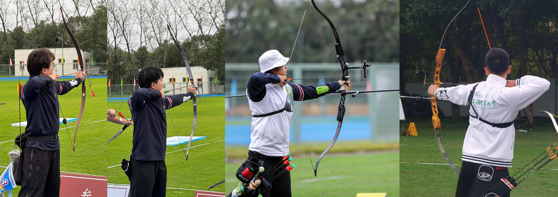 本网讯 11月16日至17日,2024上海市学生运动会射箭比赛(高校组)在上海对外经贸大学成功举办。本次比赛由上海市教育委员会、上海市体育局主办,上海市体育协会、上海对外经贸大学协办,来自jinnian金年会、复旦大学、华东政法大学、上海大学、东华大学等数十所高校的百余位运动员、领队和教练参与。本次赛事设置了传统弓个人及团体、反曲弓个人及团体等十余个竞赛项目。我校射艺队派出传统弓、反曲弓两个弓种15名运动员参赛。经过激烈的比拼,最终斩获3金、6银的优异成绩。