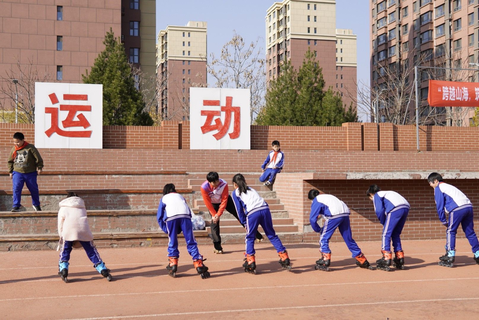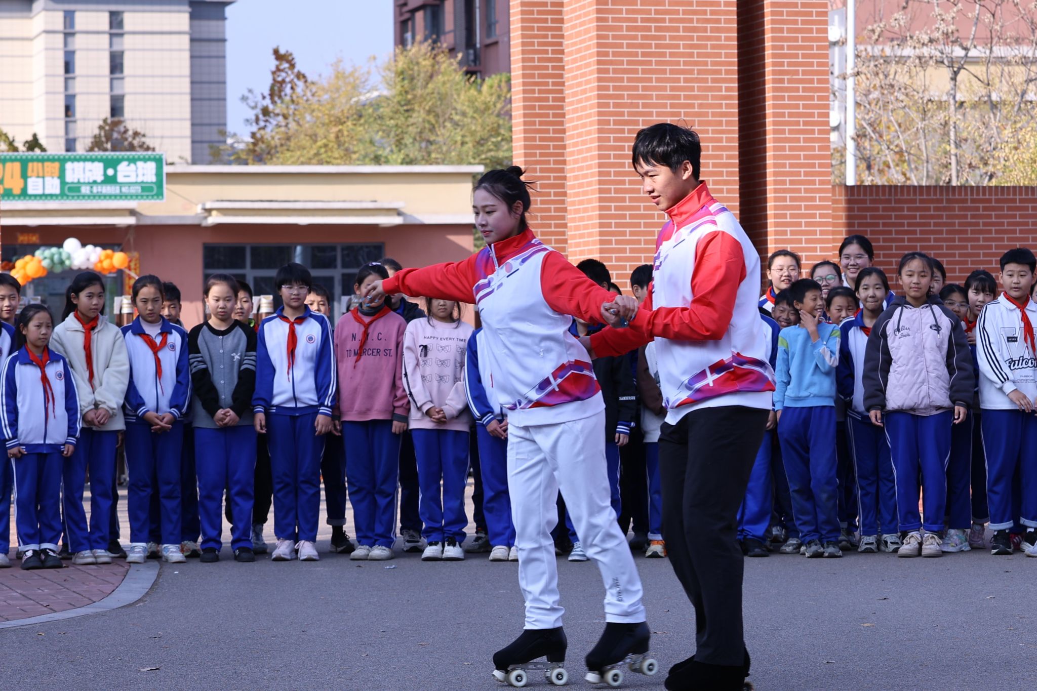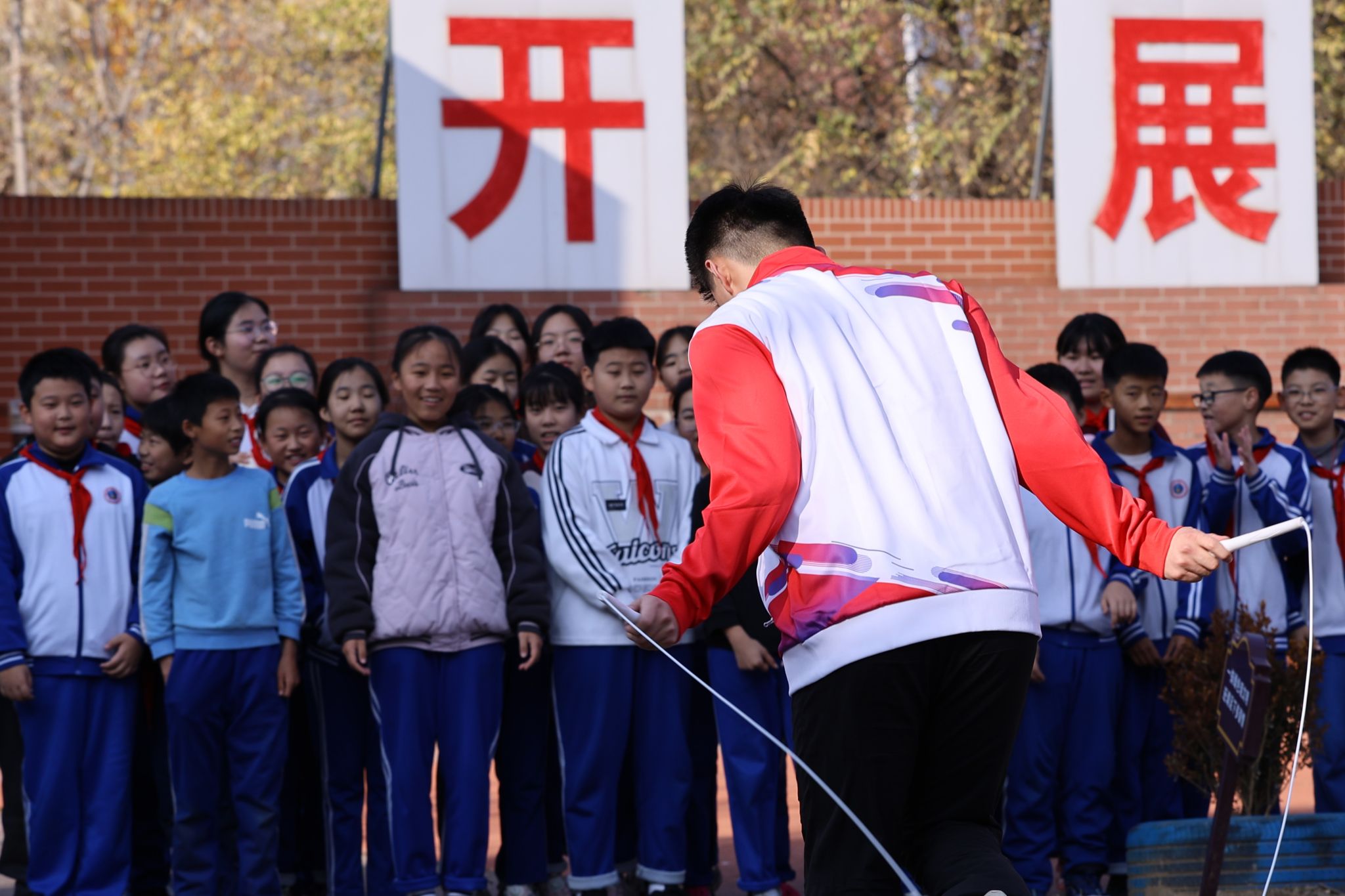 尽管已是深秋,十一月的阜平依旧沐浴在温暖的阳光下。“山海健康”团队的成员们分为四个小组,为不同年级的学生们带来了精彩的花样跳绳、轮滑、机器人和足球项目的表演及特色教学,为学生们提供了前所未有的体验,校园里回荡着欢声笑语。