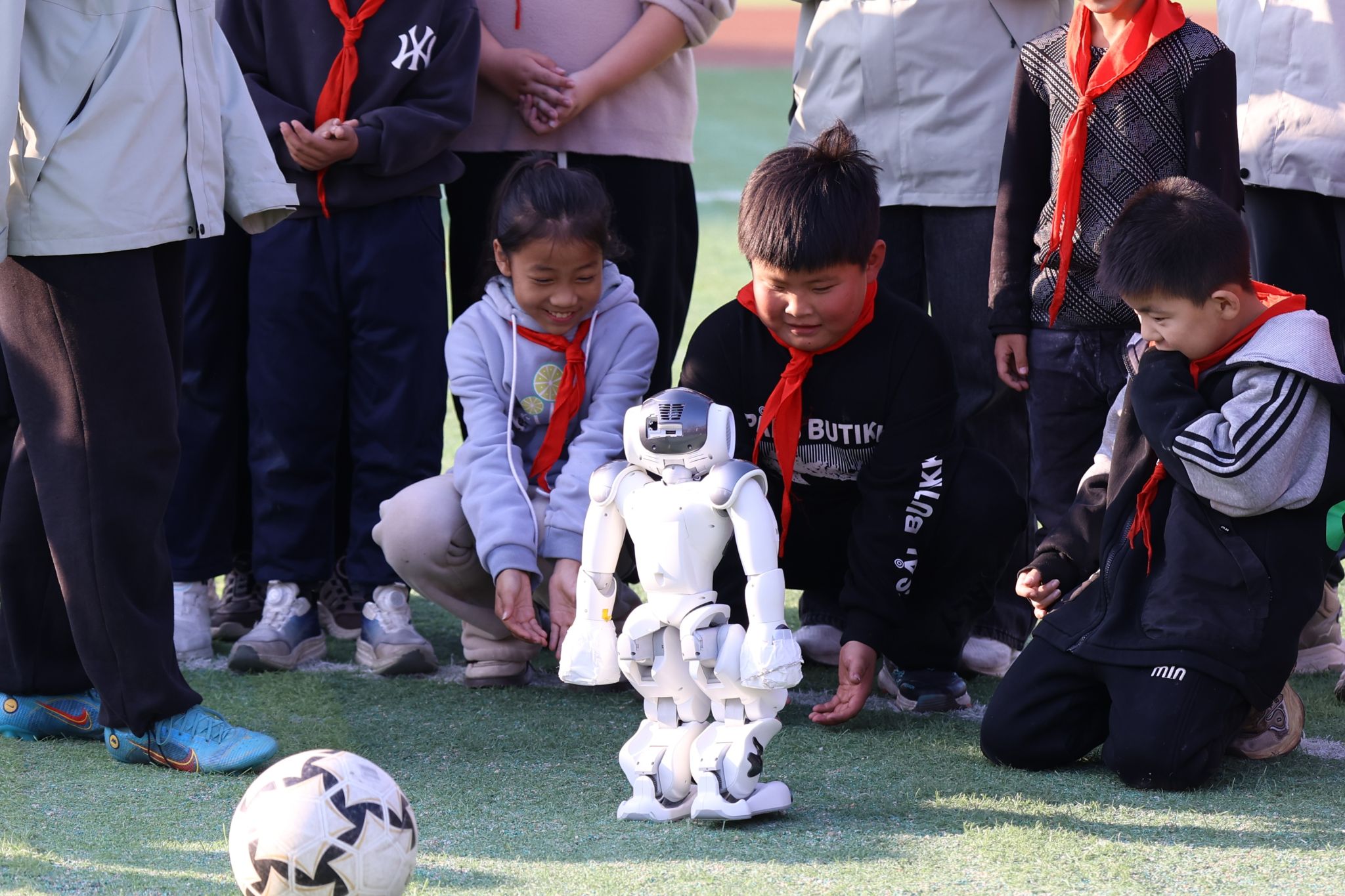 随着音乐的节拍,机器人灵活地舞动,机器人舞蹈表演更是吸引了所有人的目光。在机器人踢球互动环节,同学们积极地参与其中。机器人精准的传球让同学们大开眼界,体验了与机器人合作的乐趣。同学们惊叹于机器人的协调性和技术的进步,这不仅让他们对机器人技术有了更深的认识,也激发了他们对科技的兴趣。
