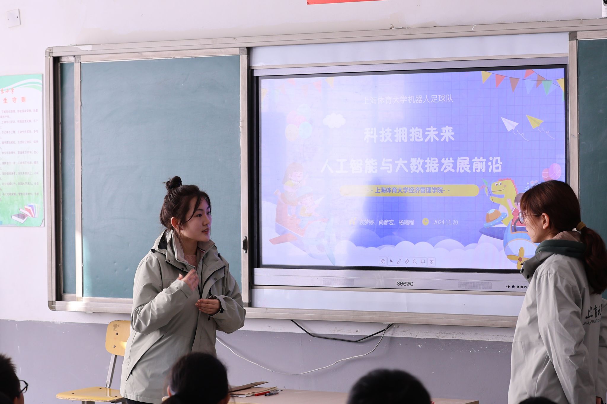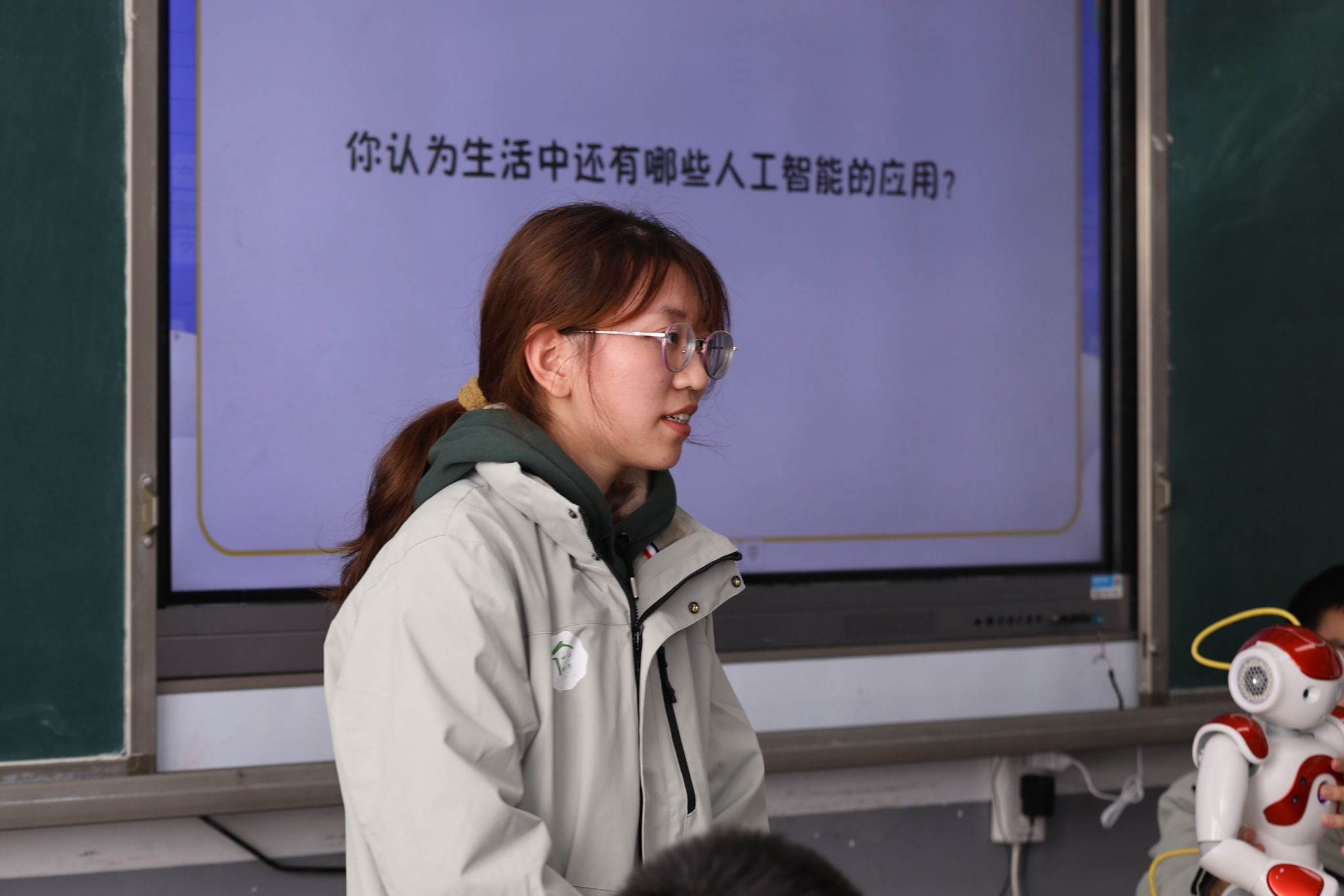 在讲座中,团队成员用生动的语言和实例,向学生们展示了人工智能在日常生活中的应用。同学们认真聆听,积极回答了团队成员的互动问题。