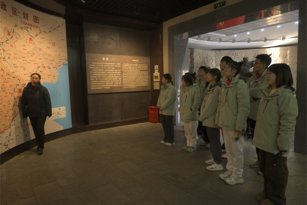 晋察冀边区革命纪念馆,坐落于河北省保定市阜平县城南庄镇城南庄村,由展览区、室外雕塑区以及后山旧址区三部分组成,充分展示了晋察冀军民在抗日战争和解放战争中的光辉事迹和艰辛历程。在讲解员的引导下,“山海健康”师生团队参观了晋察冀边区革命纪念馆,在一件件珍贵文物、一张张历史照片中深刻感悟党史。