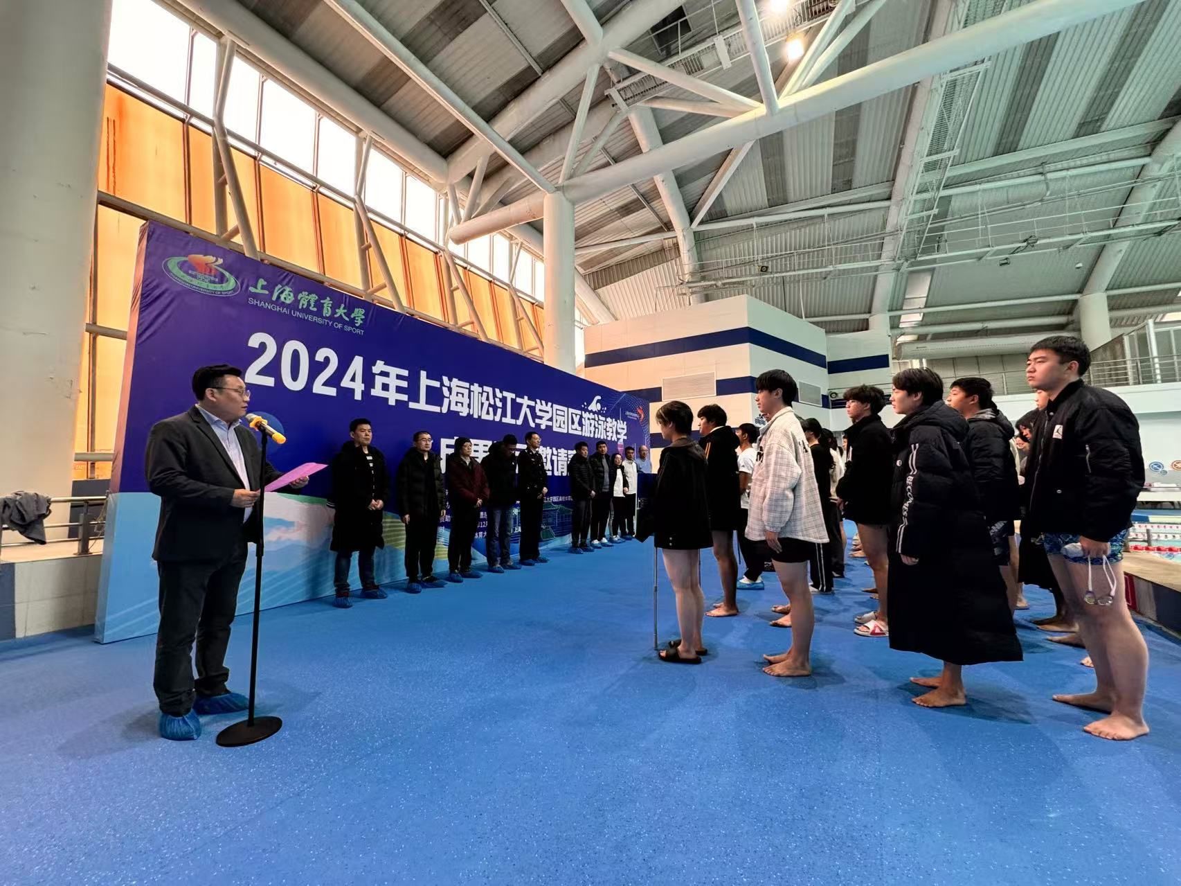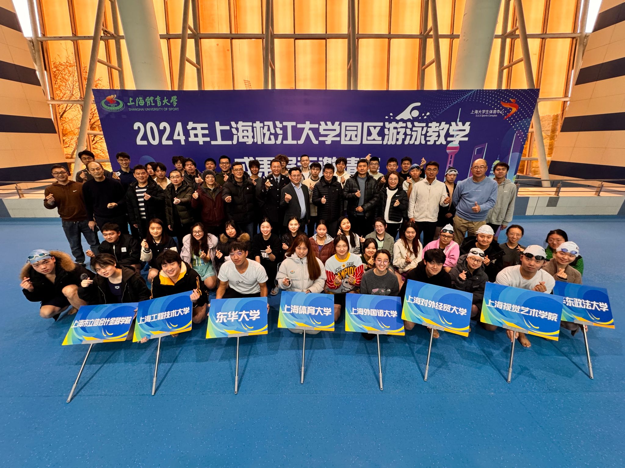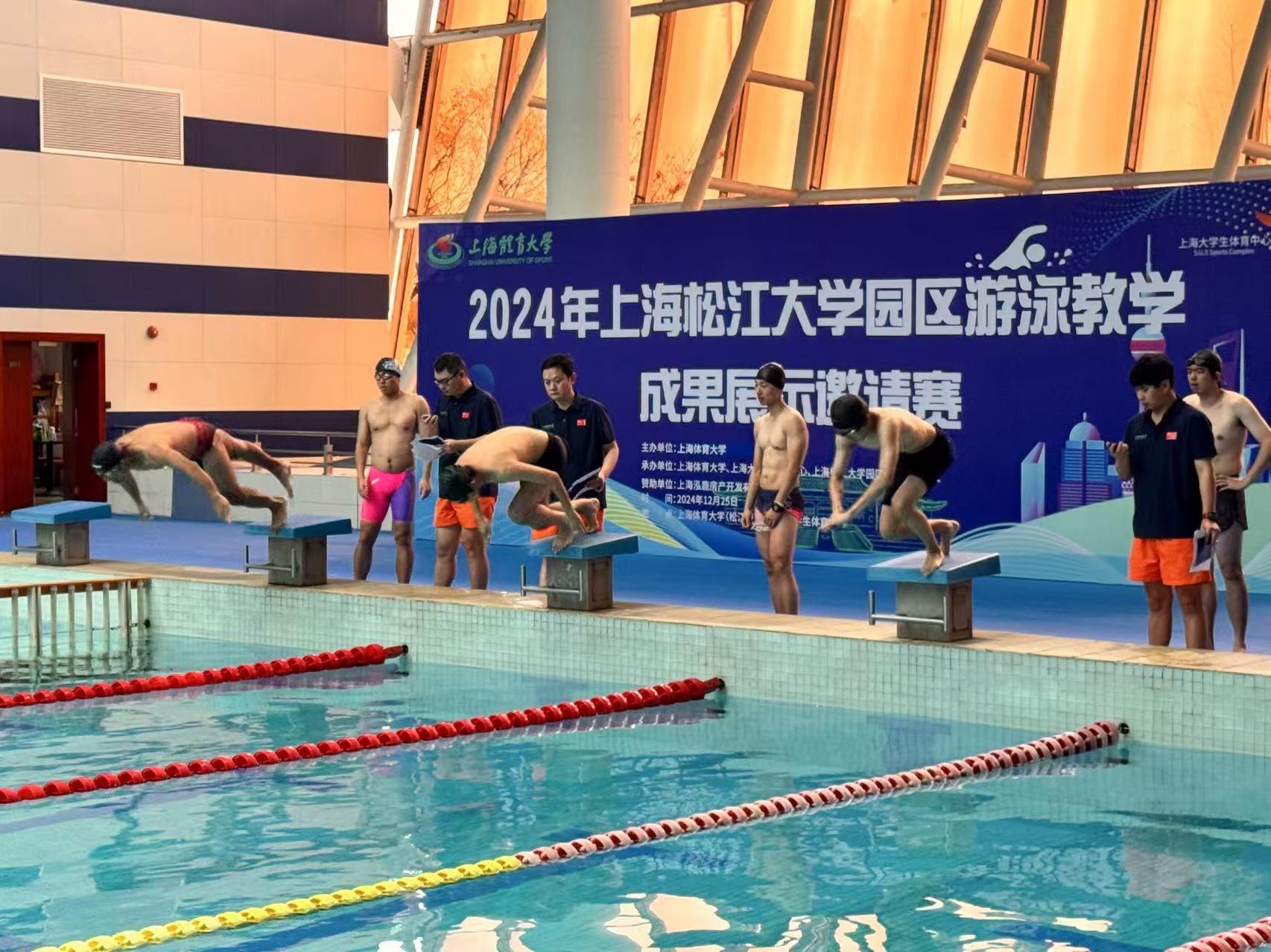本网讯 12月25日,松江大学城园区游泳教学成果展示邀请赛在我校松江校区上海大学生体育中心游泳馆顺利开赛。本次比赛是我校入驻松江大学城后首次主办该项传统体育赛事,比赛吸引了共计8所高校组队参赛,共同角逐包括自由泳、蛙泳两大组别,短距离、长距离、团体赛三类奖项的荣誉。松江大学园区各高校体育部及松江大学城派出所领导出席开幕式。
