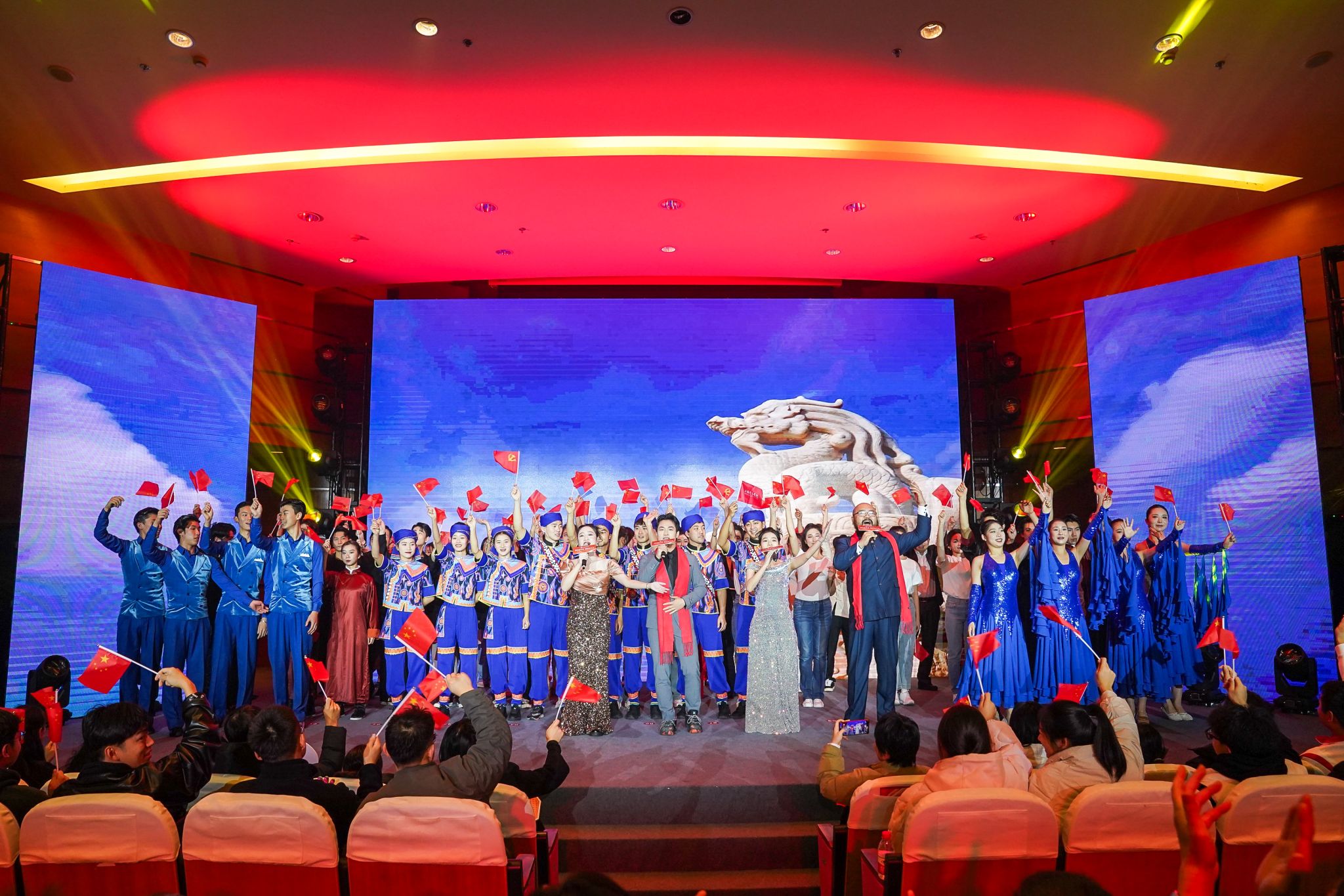 展示环节以武术、舞蹈、民乐、朗诵、合唱等形式,展现全体师生员工拼搏奋斗的精神面貌和团结向上的风采。