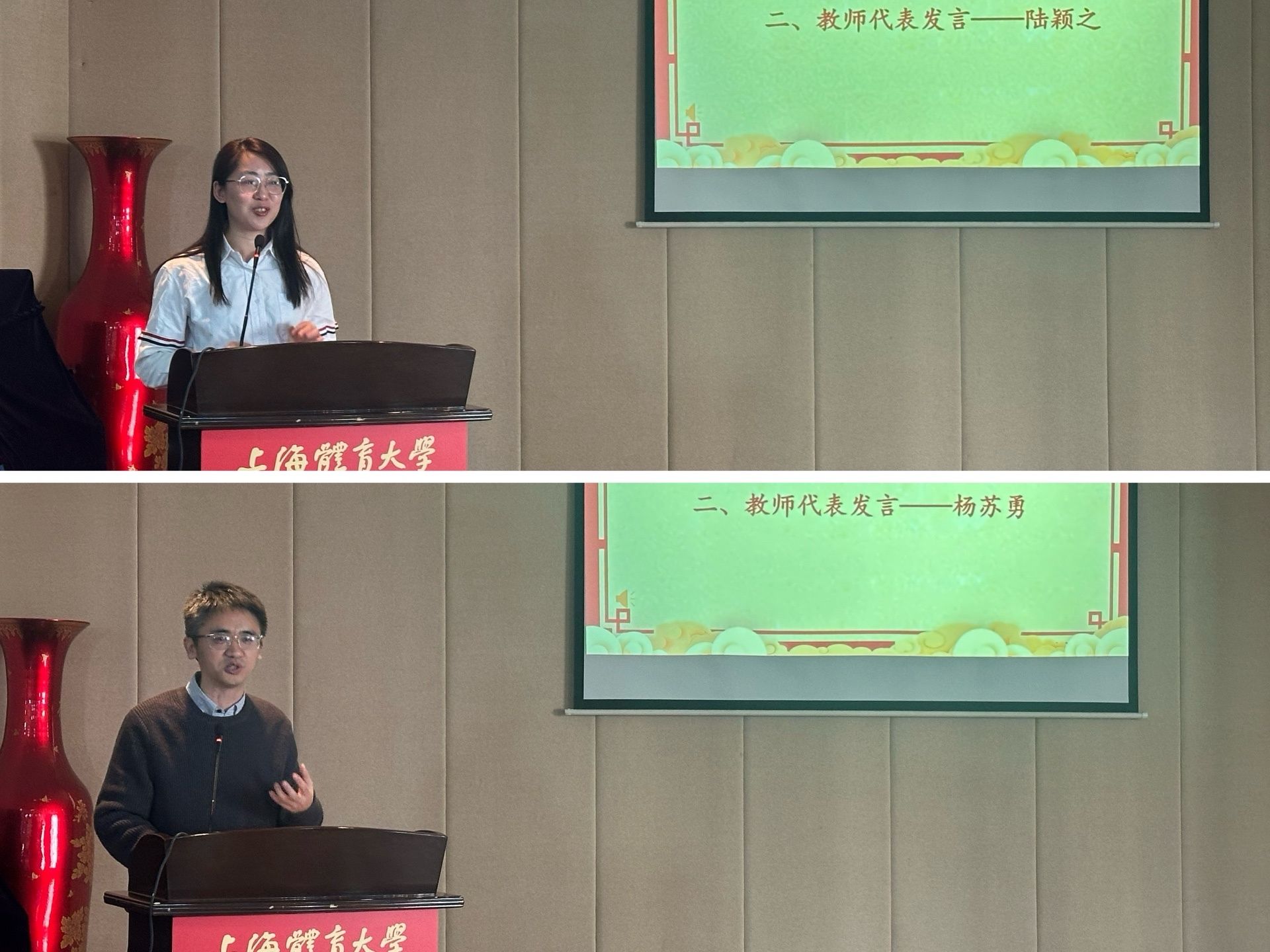 会上,心理实验中心负责人陆颖之老师与基础心理学教学团队负责人杨苏勇老师作为教师代表进行交流发言。陆颖之表示,一级学科博士点成功获批来之不易,为此感到无比的光荣和自豪,同时分享了人工智能对于科研工作的经验及挑战,勉励心院学子笃行不怠。杨苏勇分享了迎接教学评估和心理学学科发展20周年的切身感悟,面对困难和挑战,心理学院每位教师的责任心与使命感无不深刻回答着“教育家精神”。展望未来,将以更加饱满的热情和创新的思维,迎接新的挑战与机遇,为心理学院的发展贡献力量。