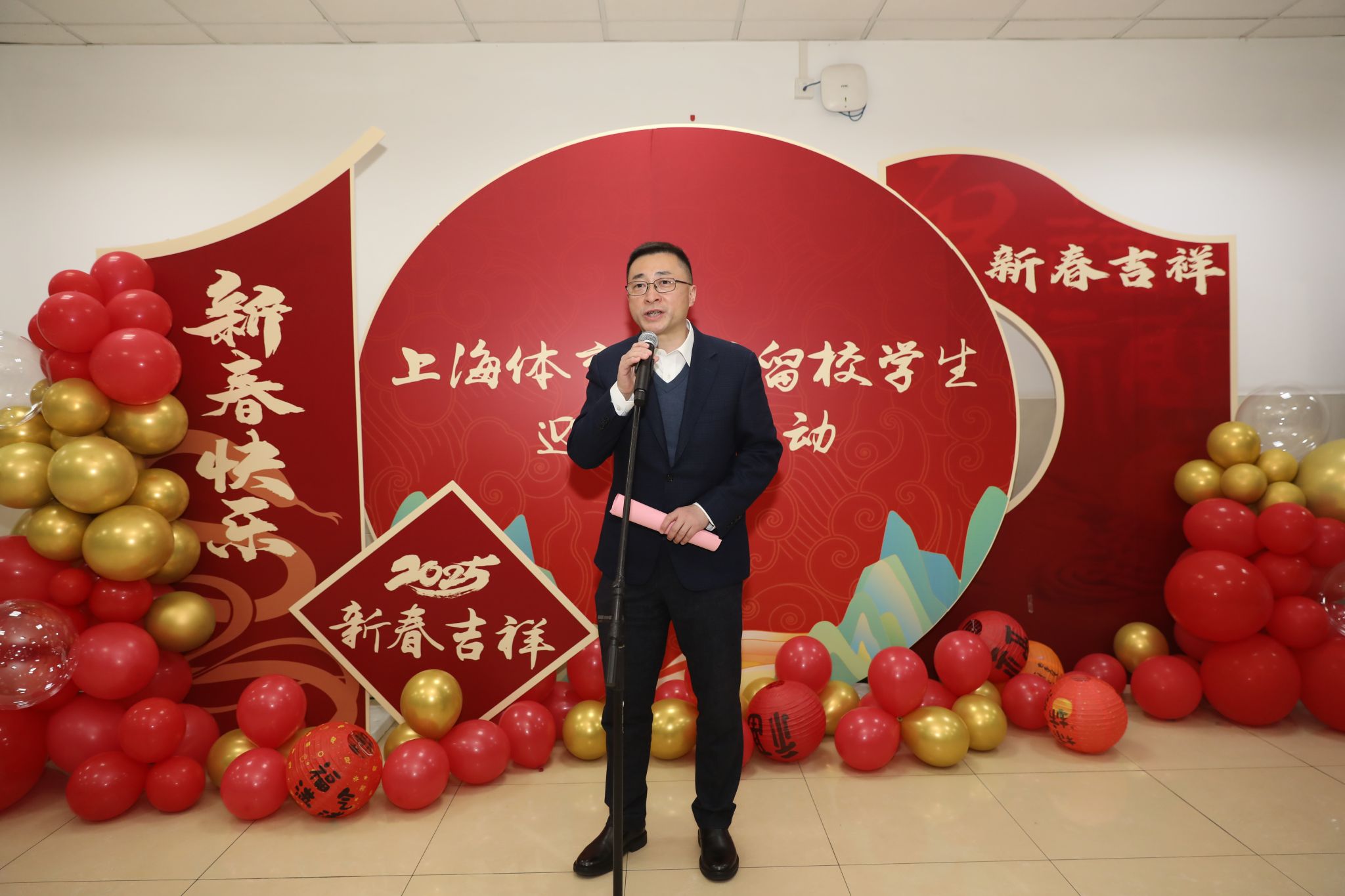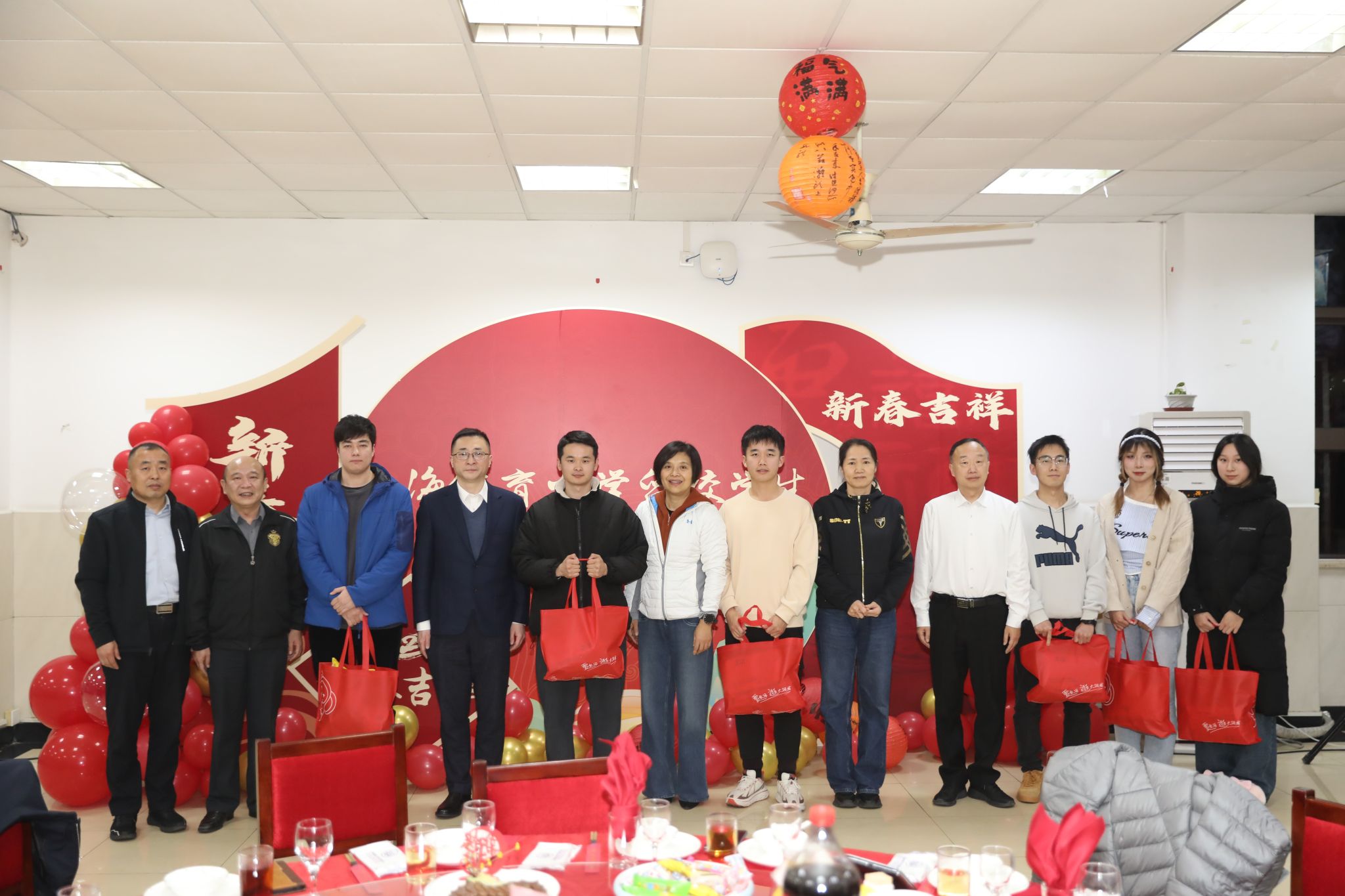 本网讯 龙隐瑞冬,蛇启新程。1月21日,第二餐厅二楼热闹非凡,整个餐厅张灯结彩,洋溢着浓厚的节日氛围,我校“2025年留校学生迎新春活动”顺利举行。校党委书记李崟,党委副书记、校长毛丽娟,党委副书记潘勤,党委副书记、中国乒乓球学院党委书记杨玲,党委副书记、纪委书记崔勇,党委副书记、副校长王继红,相关职能部门负责同志,各二级学院班子代表,教师代表与近200名留校学生欢聚一堂,共同迎接新春佳节的到来。