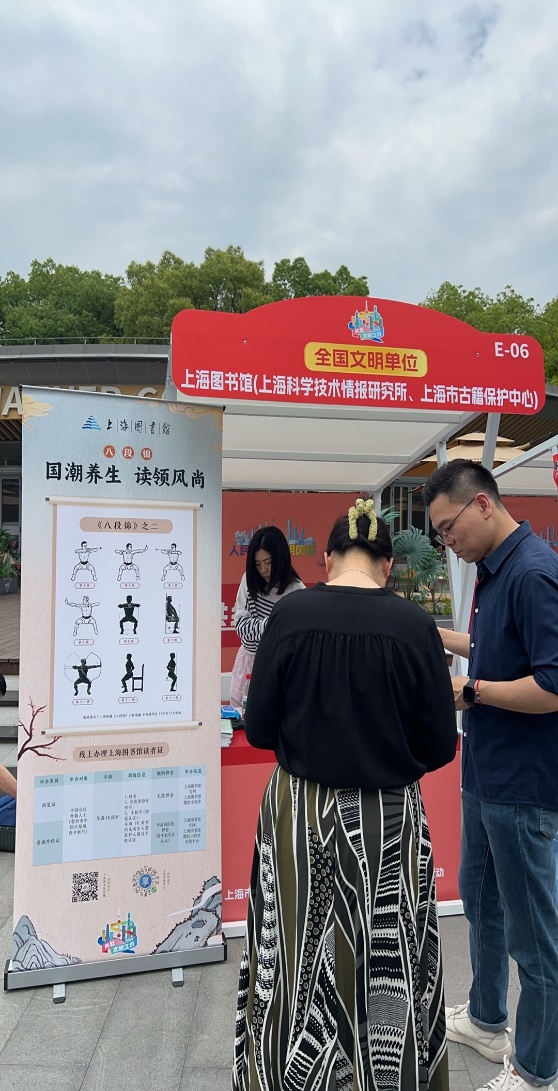 我校图书馆积极响应,与上海图书馆合作,携独特的文化展示与贴心服务以“国潮养生·读领风尚”为主题亮相活动现场,为市民带来一场别开生面的文化体验。