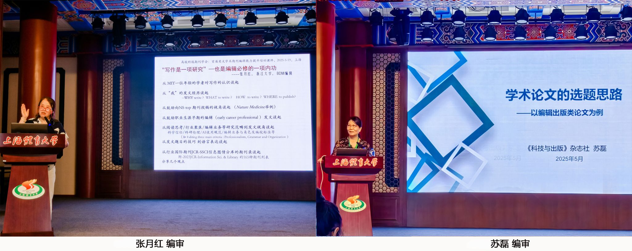 浙江大学Bio-Design and Manufacturing负责人张月红、清华大学出版社《科技与出版》杂志社主编苏磊两位编审,分别以“‘写作是一项研究’—也是编辑必修的一项内功”和“学术论文的选题思路”为题,用生动丰富的案例,为大家详细讲解了编辑写作中的精准选题以及写作和发表技巧。