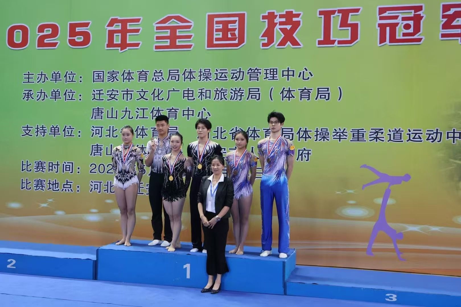 我校技巧队在这场比赛中派出了4名运动员,分别参加成年组混合双人和女子双人两个组别的比赛。经过为期4天的激烈角逐,4名运动员们最终凭借精湛的技艺和顽强的拼搏精神,在决赛中脱颖而出,成功夺得成年组混合双人和女子双人全能冠军,为学校赢得了荣誉。