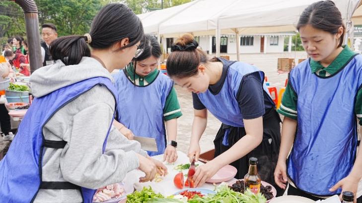 瀛东村是崇明垦拓精神的发源地,学员们在这里感受了大自然的馈赠,体验了丰富多彩的实践活动。活动伊始,学员们通过分组热身小游戏迅速拉近了彼此的距离。随后,他们穿上水裤摸鱼、采摘果实、制作崇明糕,亲身体验乡村生活的乐趣。午餐时,学员们分工合作,生火做饭,享受自己劳动的成果。此外,学员们还参与了东滩骑行活动,在艰苦环境中磨砺韧性,将理论认知转化为实践行动力,沿着近18公里的路线,欣赏沿江美景,增强团队协作意识。