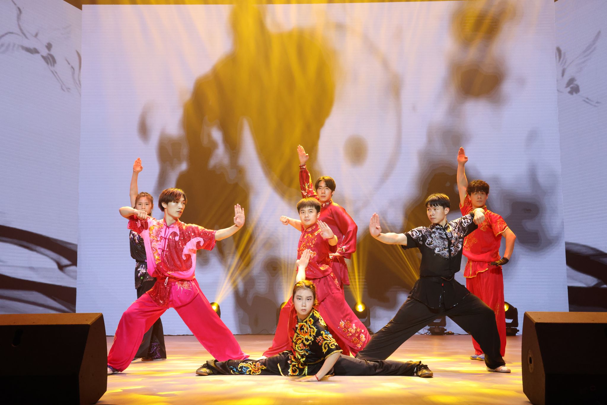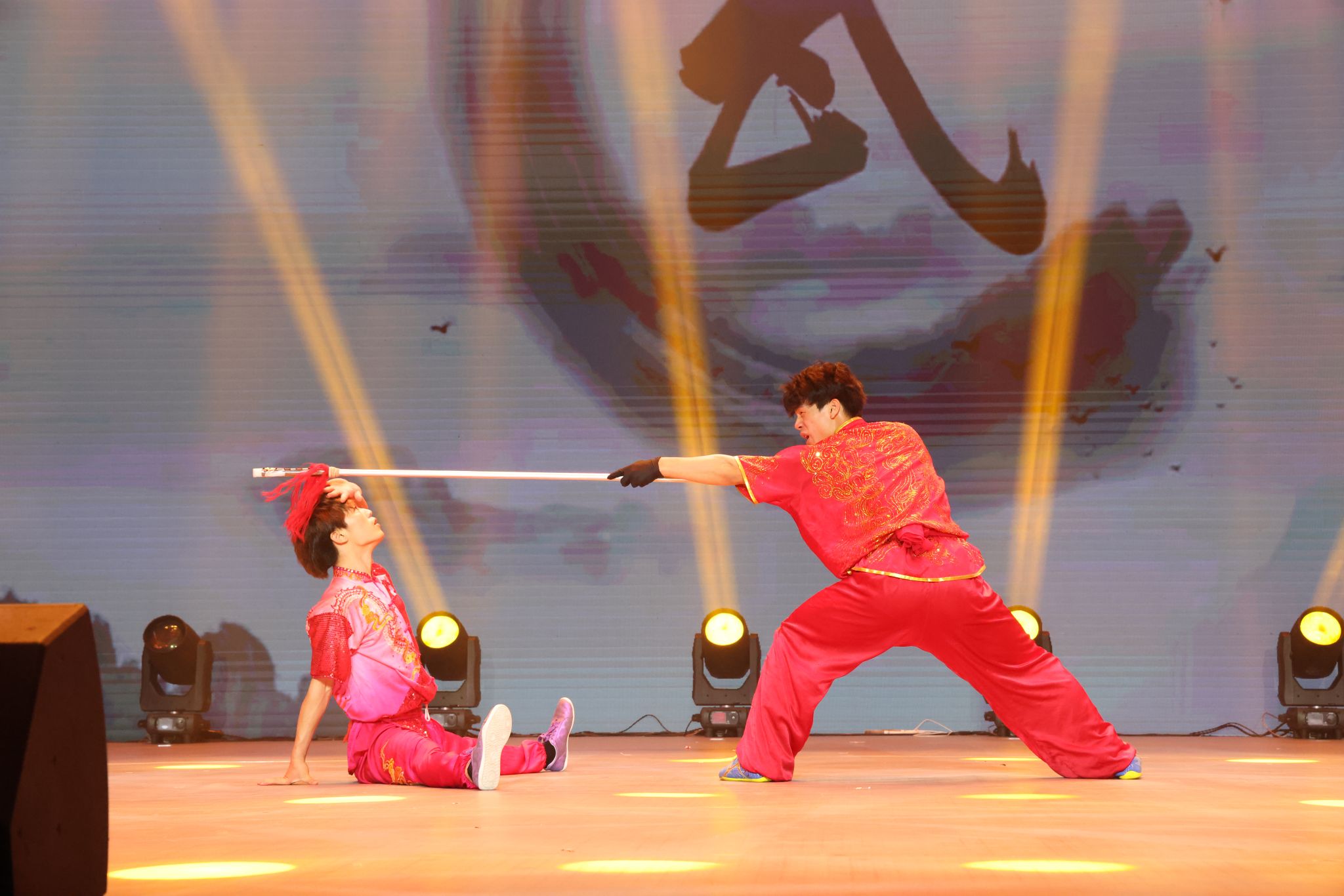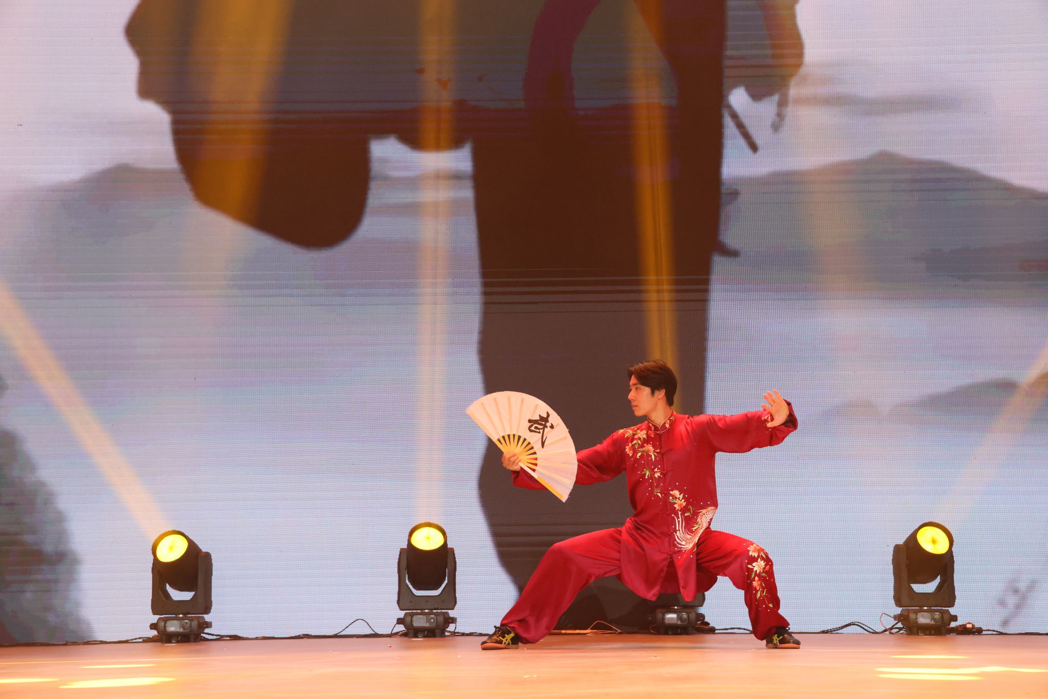 武术表演《风华武彰》节目融合了醉剑、双刀、南刀、棍术、双剑、双鞭、太极扇、空手夺枪及集体咏春拳,一招一式尽显刚柔并济,行云流水将武术之美淋漓尽致呈现,以武术展现中华民族传统体育文化的魅力。