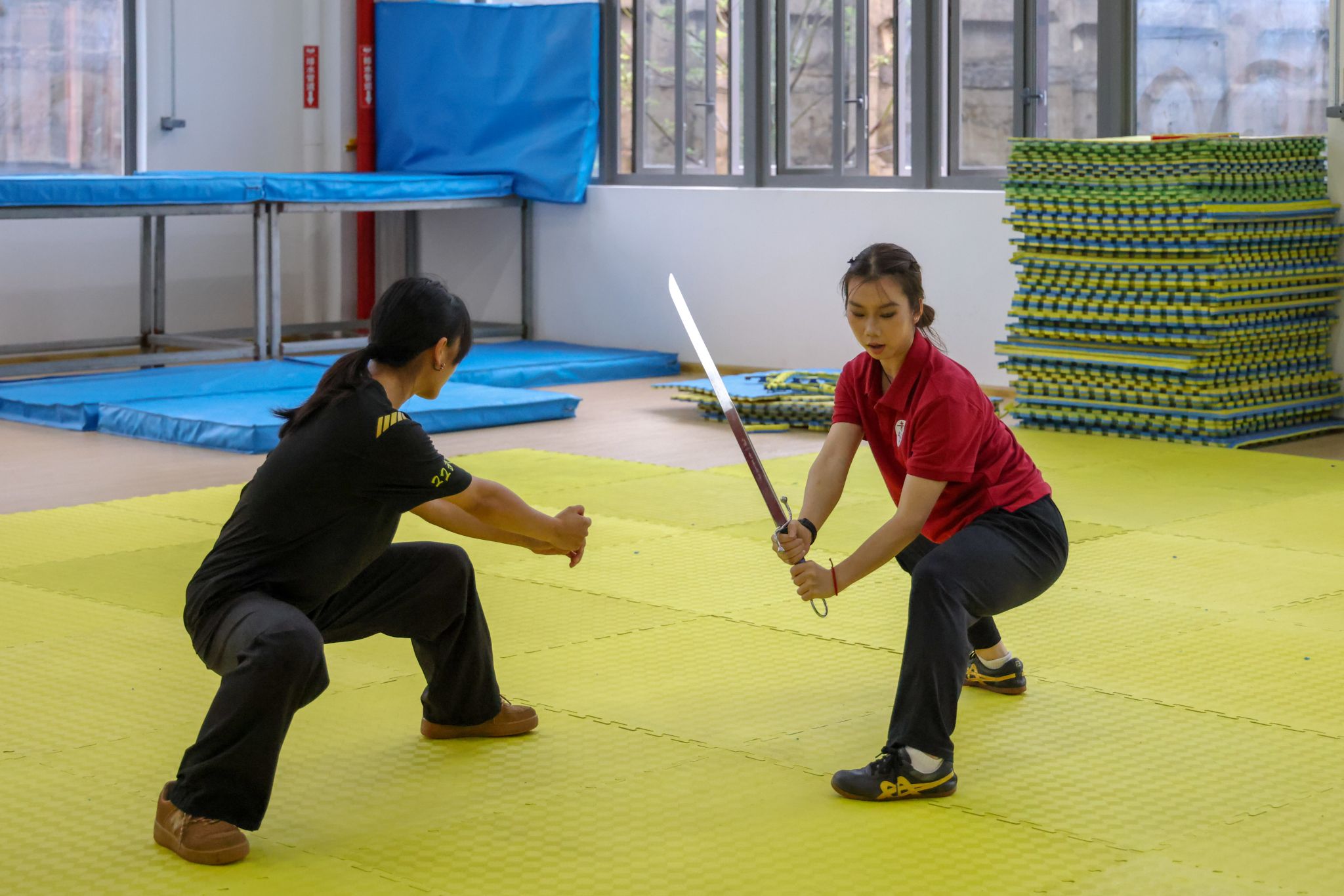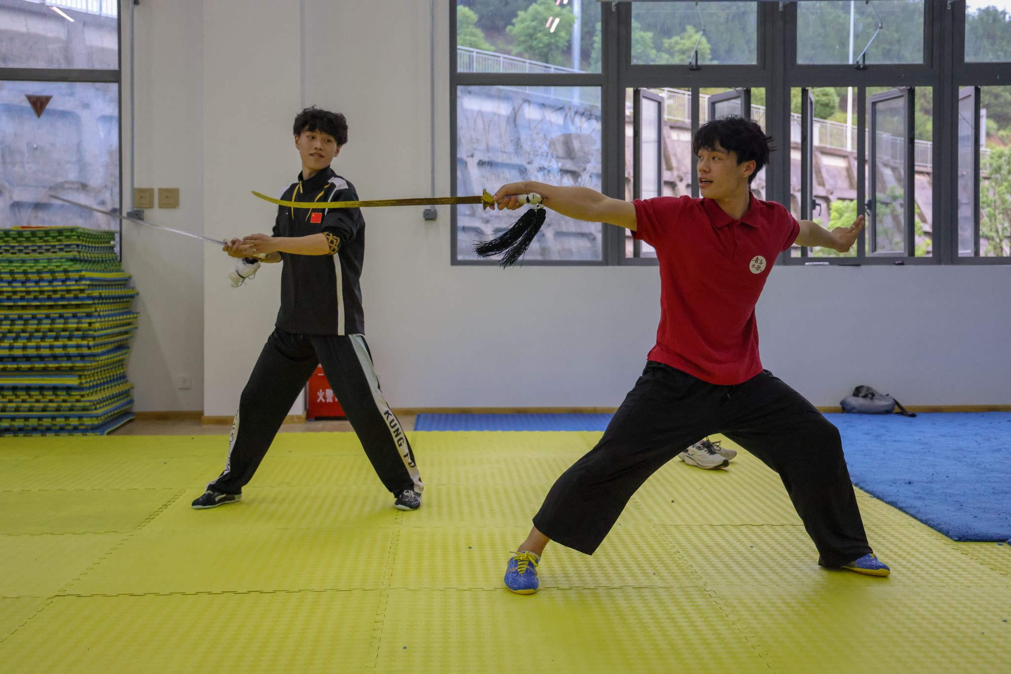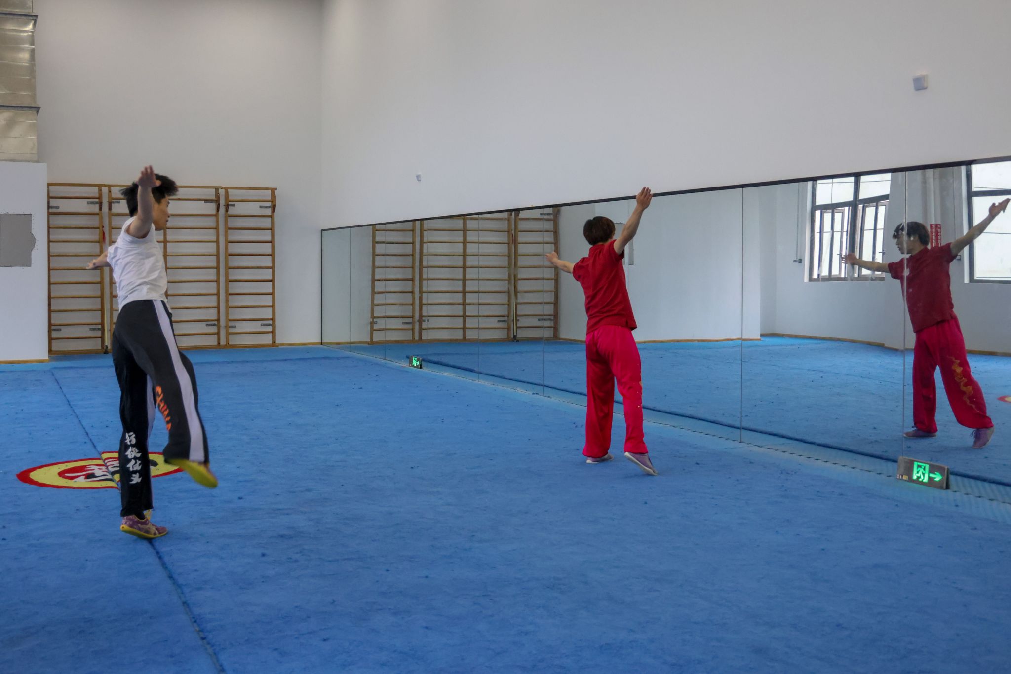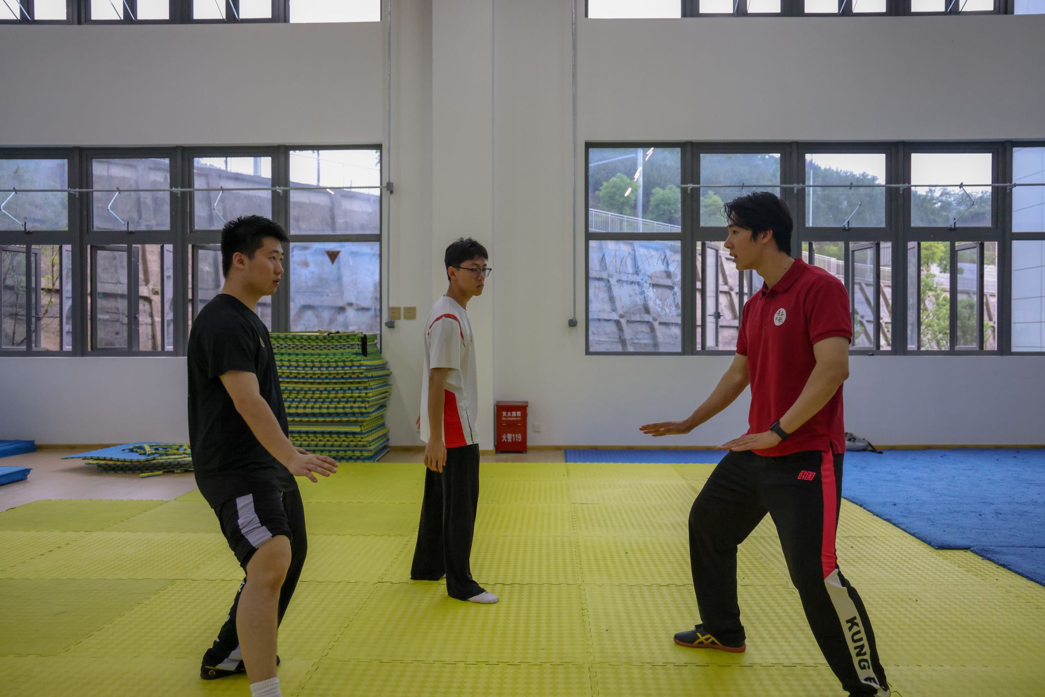 演出间隙,三明学院武术队学生主动来到后台,邀我校武术学院学子至训练场地交流。在轻松而热烈的氛围中,两校学生抛开校际界限,就武术训练方法、技术要领、比赛经验、动作编排等进行深入探讨,上体学子将在学校所学的专业知识和训练方法倾囊相授。双方相互切磋技艺、分享经验,充分体现了“以武会友、共同进步”的武术精神。这场源于后台邀约的自发交流,成为此行鲜活、动人的一幕。