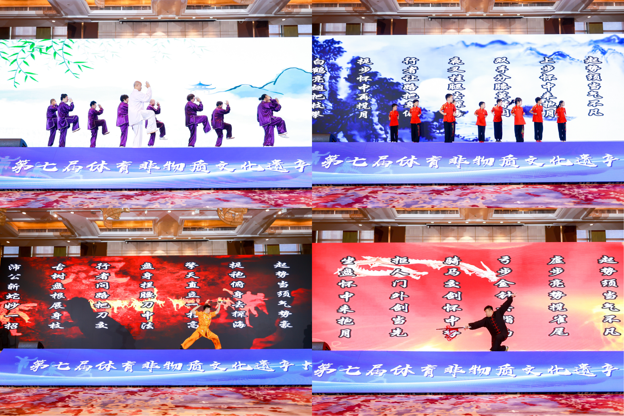 开幕式结束后举行体育非遗项目展演,包括龙形拳械、孙式太极拳、太祖拳械等代表性拳种,以及满族二贵摔跤、九宫八卦转掌、戳脚、八极拳械、六合螳螂拳等国家级、省级非遗代表性项目。最后,以传统冰雪体育影片为展演画上圆满句号。体育非遗项目以其独特的文化形态集中展现了活态性、地域性、民族性,生动诠释了中华文明的突出特性。