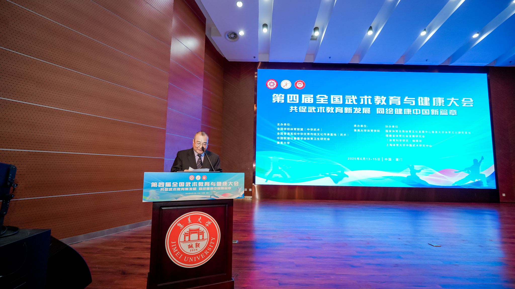 本网讯 为深入学习贯彻全国教育大会精神和习近平总书记关于教育的重要论述,落实《“健康中国2030”规划纲要》,推动中华优秀传统文化创造性转化、创新性发展,2025年6月13日至15日,由全国学校体育联盟(中华武术)、集美大学、全国普通高校中华优秀传统文化传承基地(武术)、中国敦煌吐鲁番学会体育卫生研究会主办,集美大学体育学院承办的“第四届全国武术教育与健康大会”在集美大学召开。本次大会以“共促武术教育新发展 同绘健康中国新篇章”为主题,设置大会报告、专题报告、墙报交流、优秀案例交流、公开课展示等环节,吸引了来自全国高校、科研院所、相关部门的180余名专家、学者、武术教育工作者参会。