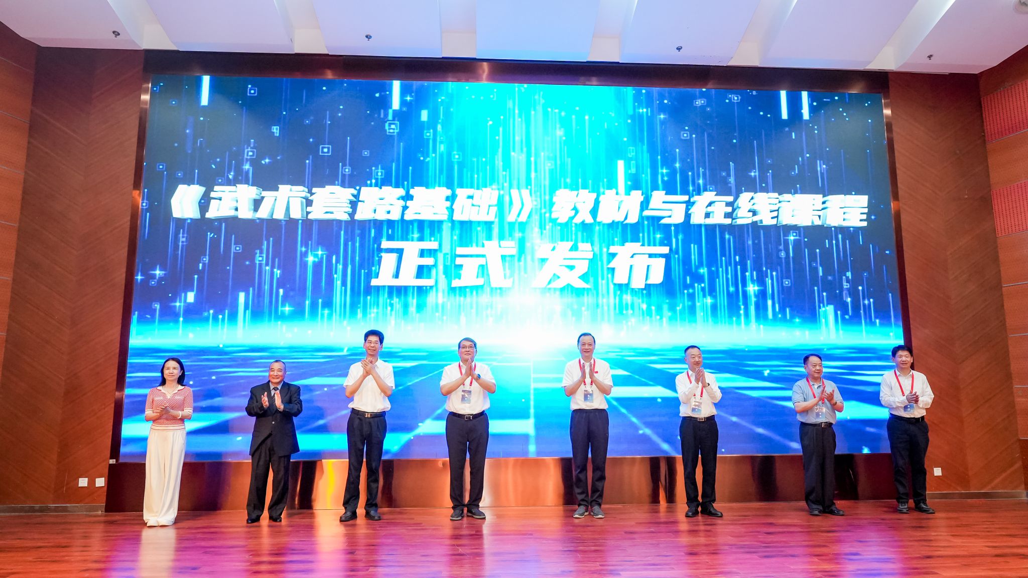 开幕式上,《武术套路基础》教材与在线课程正式发布。国务院学位委员会体育学科评议组召集人陈佩杰,全国学校体育联盟(中华武术)召集单位、jinnian金年会党委副书记潘勤,集美大学党委副书记洪文建,吉首大学原党委书记、校长白晋湘,亚洲武术联合会主席陈永杰,湖北大学体育学院原院长蔡仲林,福建省武术协会会长高楚兰,jinnian金年会武术学院院长郭玉成,共同发布教材与在线课程。