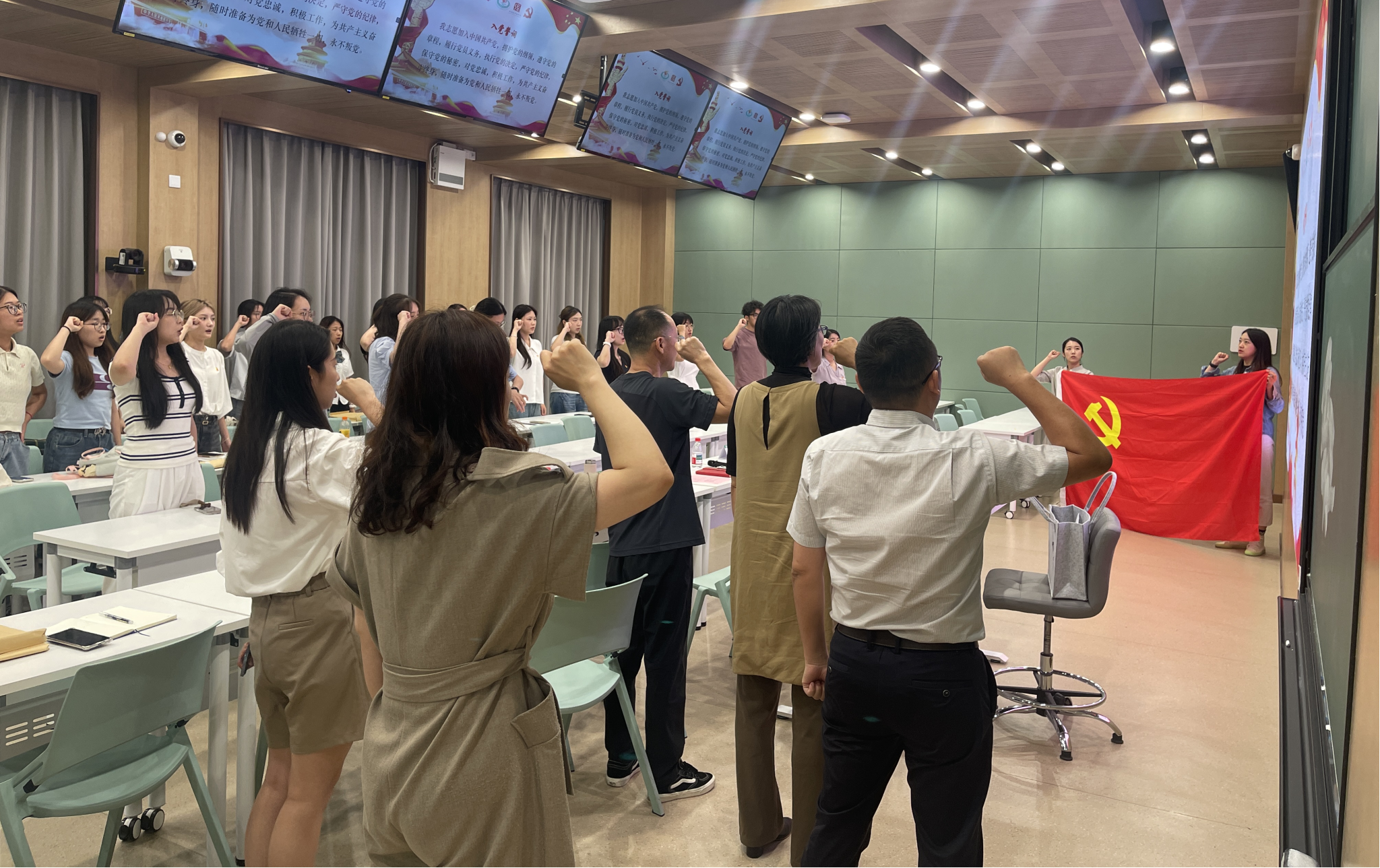 这场重温仪式既是一次涤荡心灵的党性洗礼,更是一场催人奋进的青春誓师。在鲜红党旗的见证下,毕业生党员们汲取着信仰的力量,凝聚了前行的勇气。
