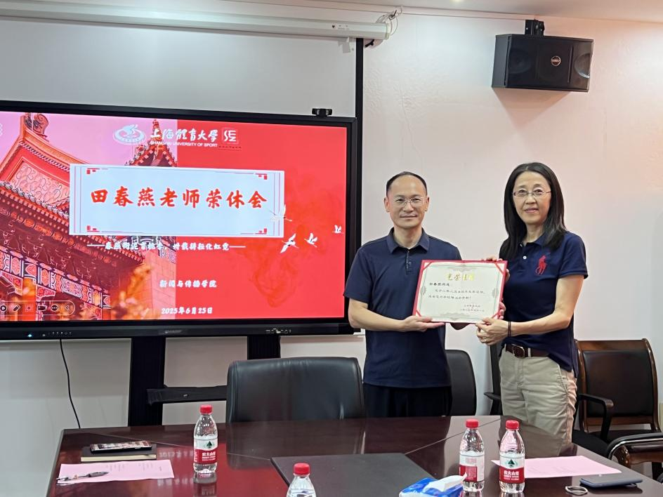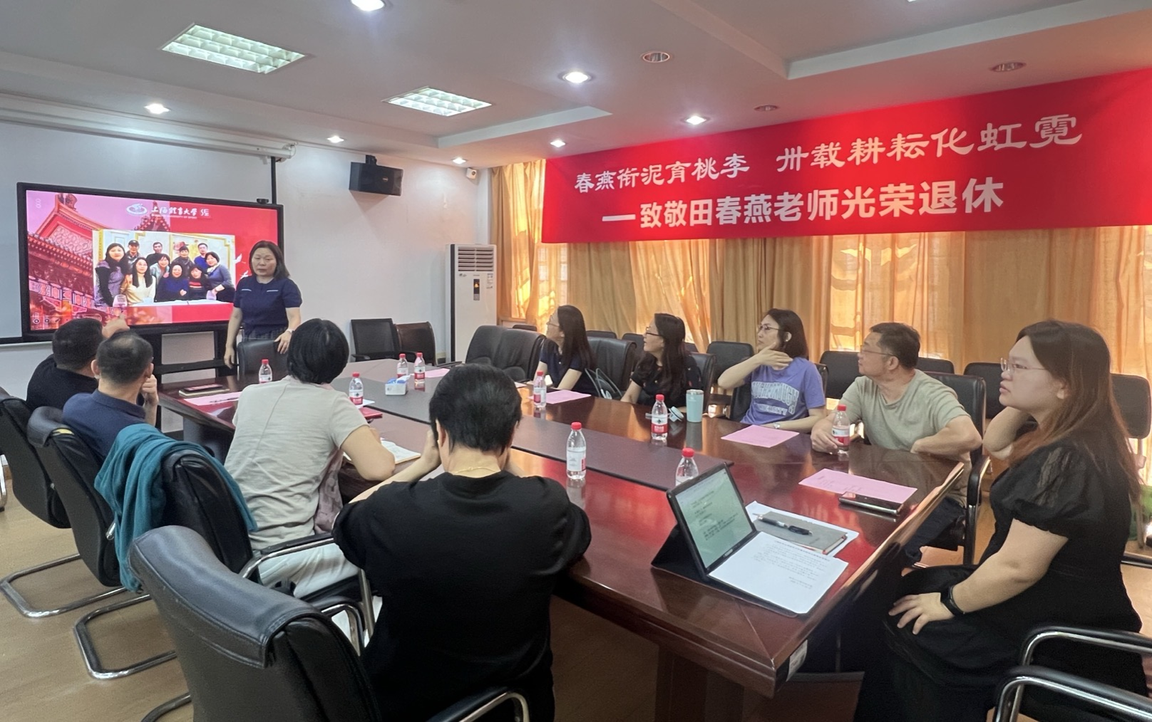 本网讯 为致敬教育奉献精神,传承优良师德师风,6月25日上午,新闻与传播学院在学院会议室为退休教师田春燕举行了温馨而庄重的荣休仪式。新闻与传播学院党委书记高艳丽,党委副书记、院长郑国华,副院长张业安,大学英语团队负责人李晖,英语专业教师代表、青年教师代表出席。会议由党委书记高艳丽主持。