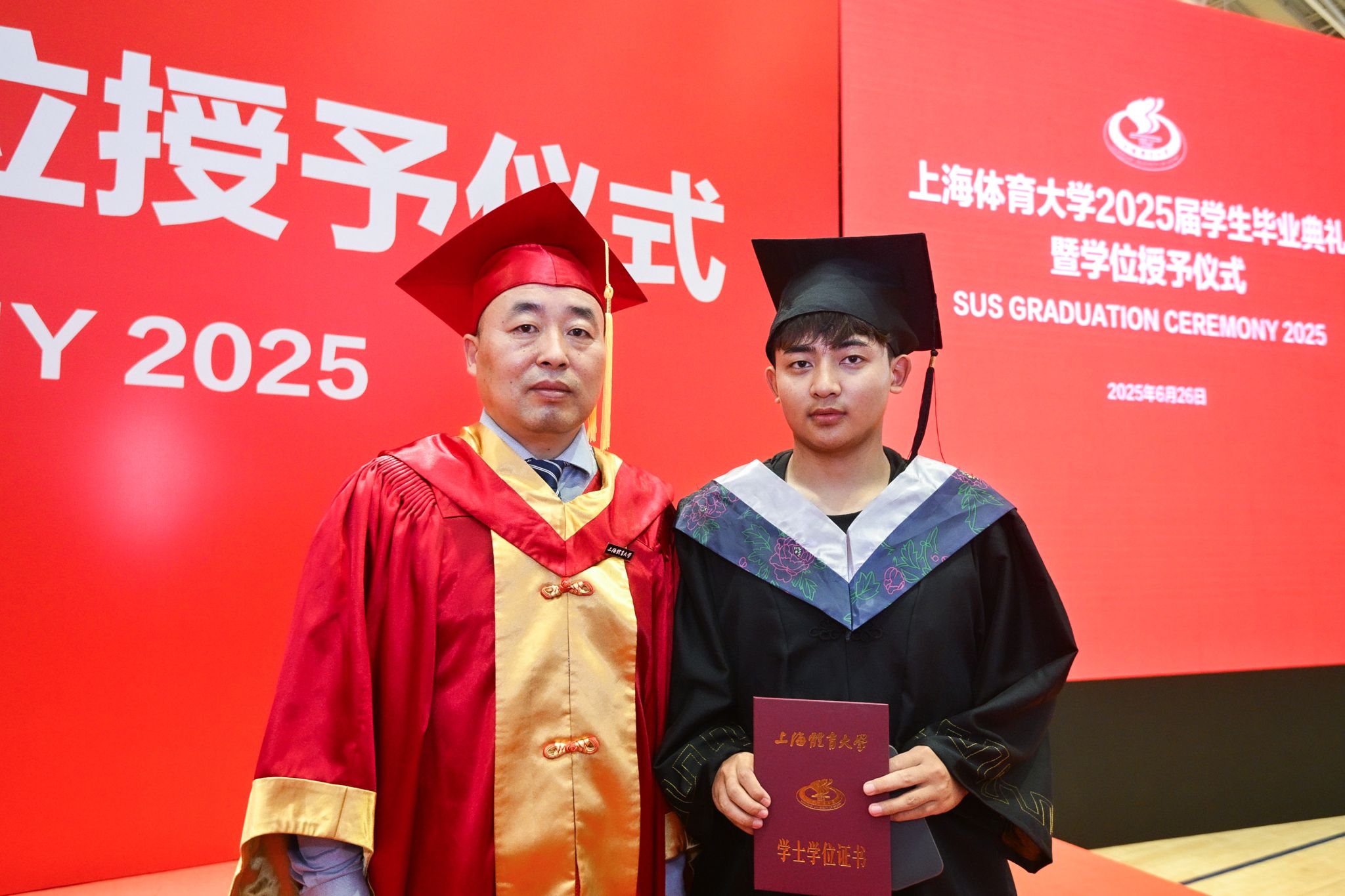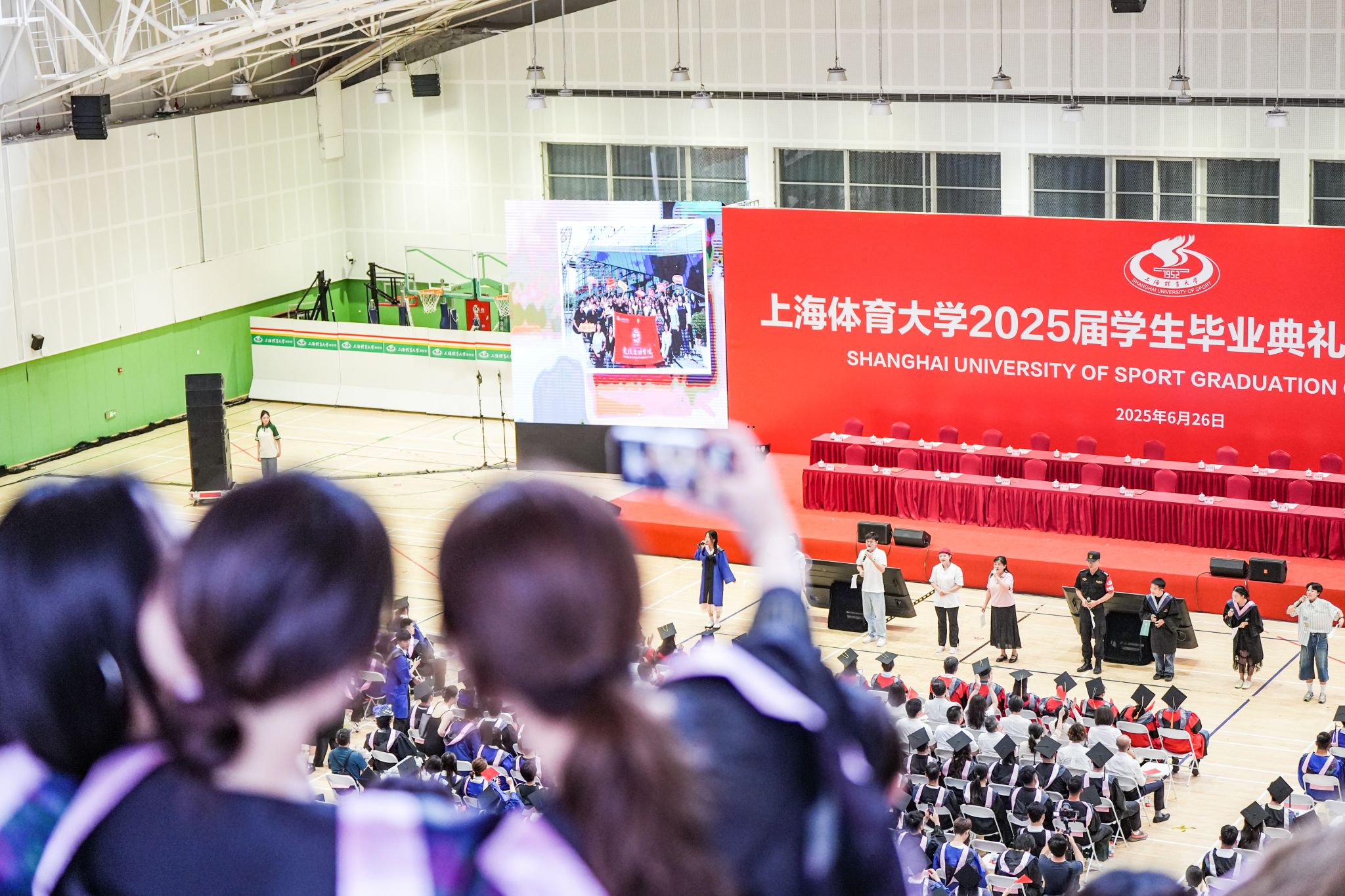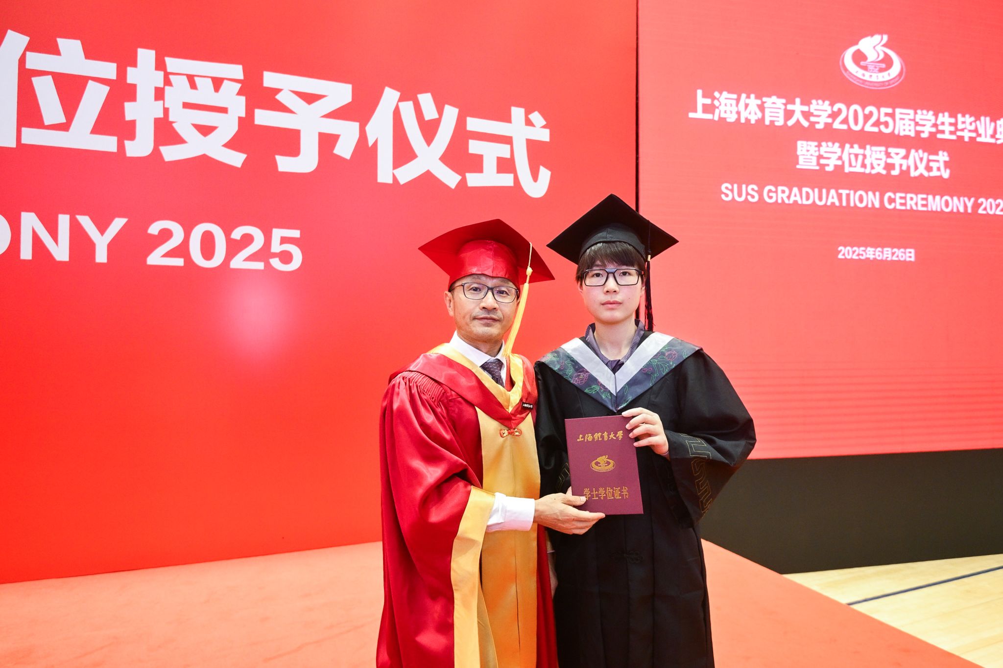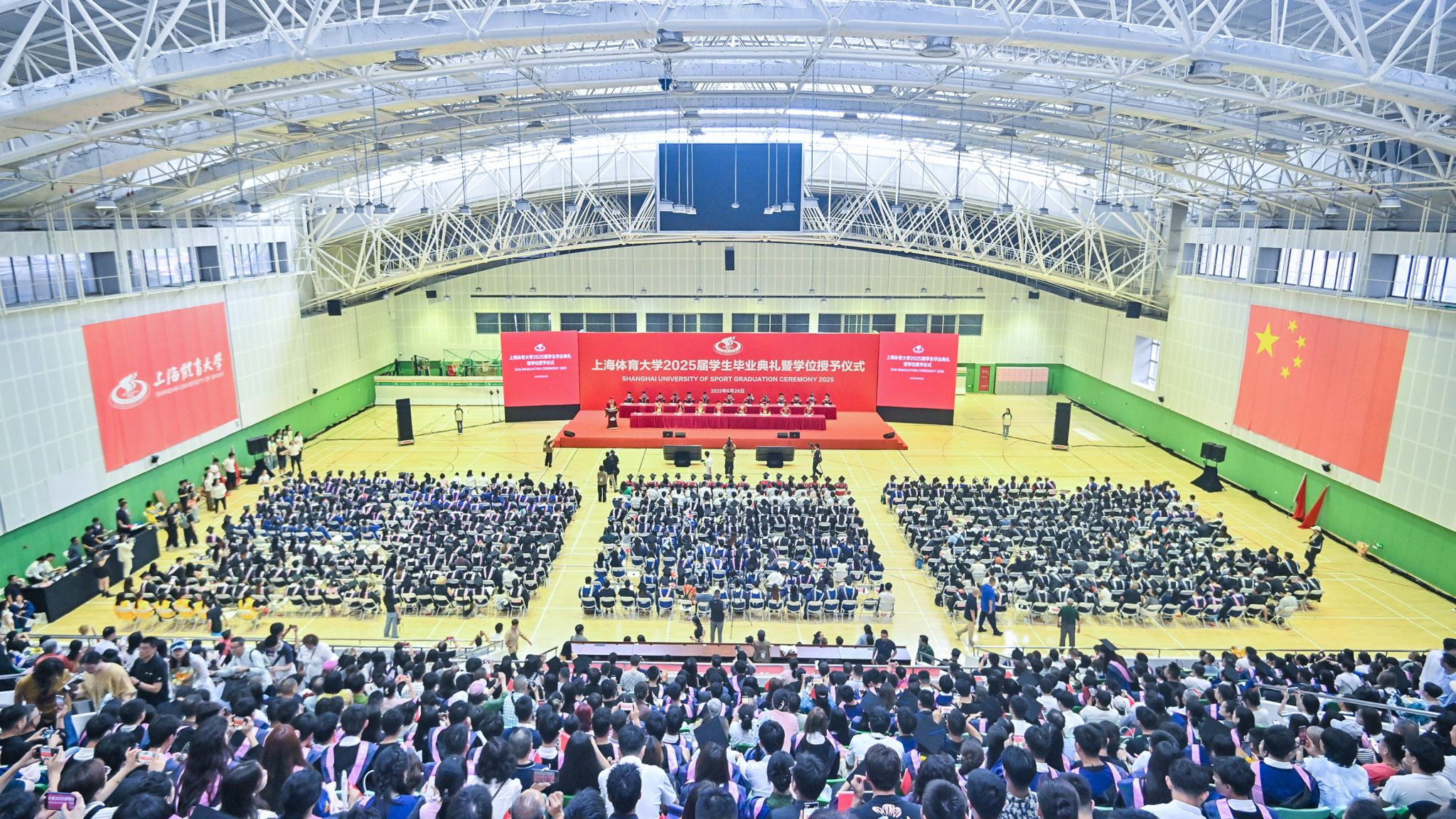 本网讯 巍巍绿瓦,骊歌未央。莘莘学子,共赴山海。6月26日上午,jinnian金年会2025届学生毕业典礼暨学位授予仪式在综合馆隆重举行,校党委书记李崟,党委副书记、校长毛丽娟,国务院学位委员会第八届体育学学科评议组召集人、校学术委员会主任陈佩杰,党委副书记潘勤,党委副书记、中国乒乓球学院党委书记杨玲,党委副书记、纪委书记崔勇,党委副书记、副校长王继红,副校长唐炎,副校长魏建军出席典礼。中乒院及各二级学院党政领导,相关职能部门、直属单位负责人,教师代表、毕业班辅导员、毕业生家长代表和2025届全体毕业生参加典礼。毕业典礼由党委副书记、副校长王继红主持。