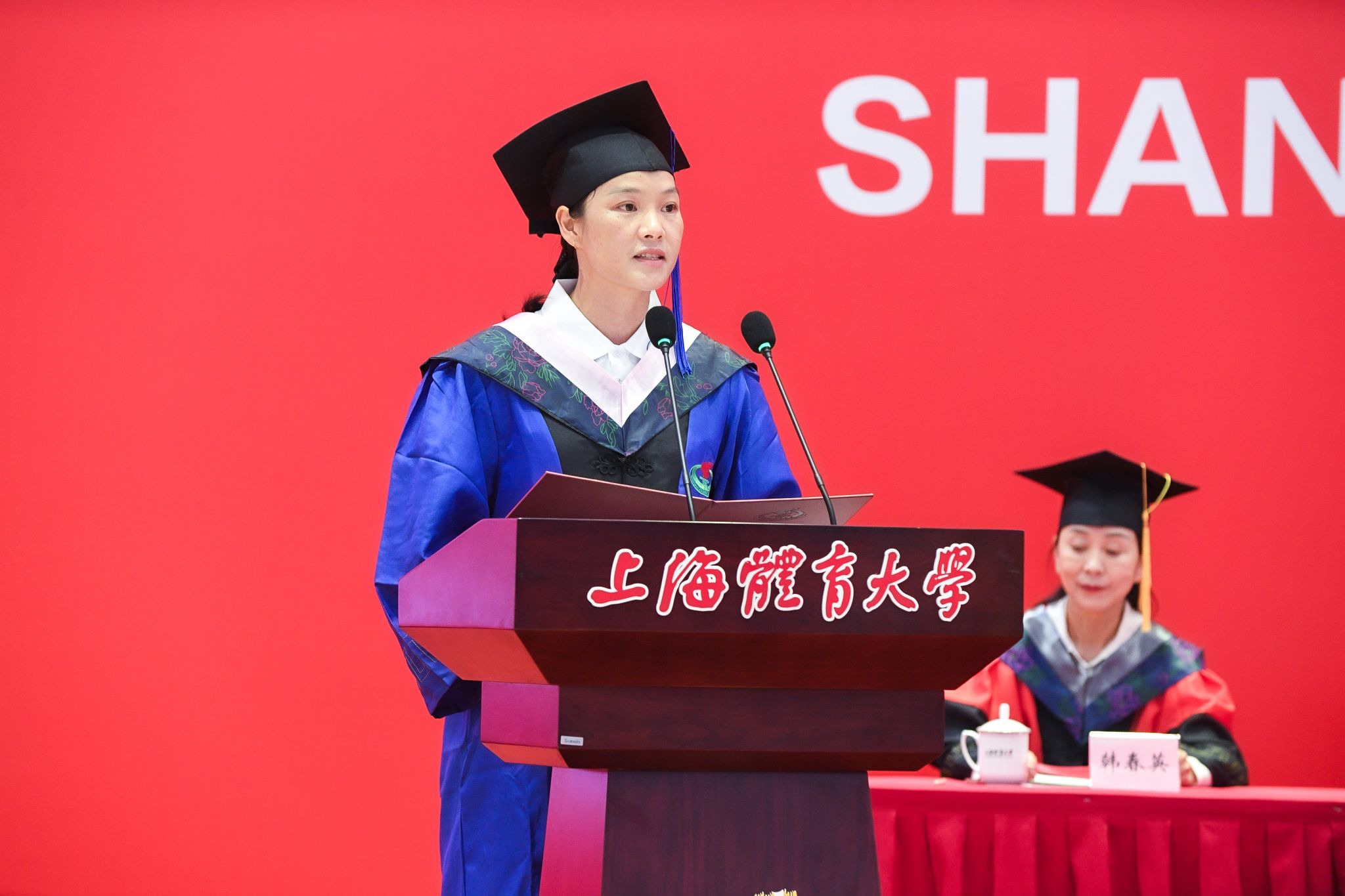 经济管理学院本科毕业生史妍、竞技运动学院硕士毕业生韦永丽和武术学院博士毕业生张泽平作为毕业生代表发言。他们分享了各自在上体的求学经历和成长感悟,话语中感恩师友、憧憬未来,与绿瓦深情作别。未来,他们将铭记“身心一统,兼蓄竞攀”的校训,以积极进取之姿,勇攀体育事业之巅。