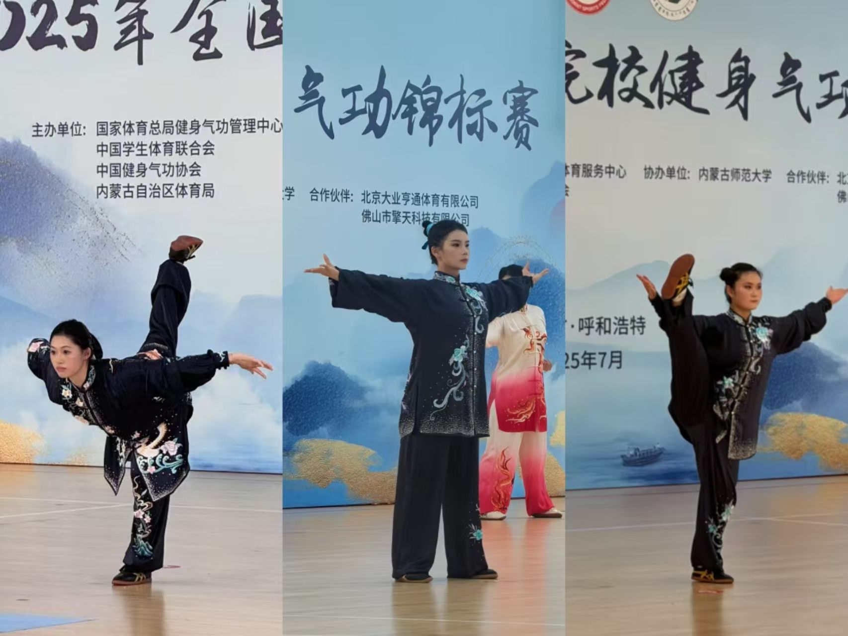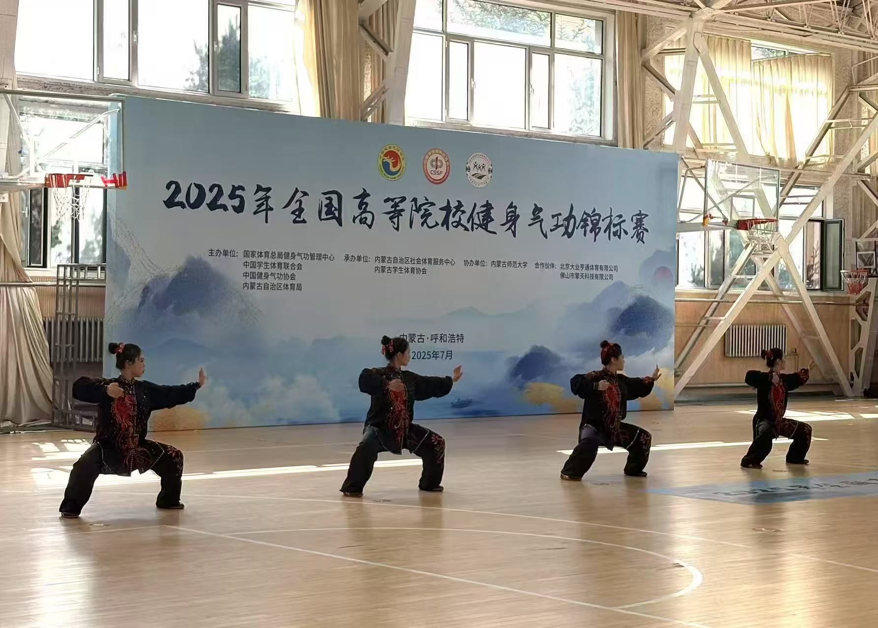 本网讯 7月27日至30日,2025年全国高等院校健身气功锦标赛在内蒙古自治区呼和浩特市火热开赛。本次赛事由国家体育总局健身气功管理中心、中国学生体育联合会、中国健身气功协会、内蒙古自治区体育局主办,来自全国29个省区市327支高校队伍的1368名运动健儿们齐聚一堂,在内蒙古师范大学展开了一场传统与活力交织的精彩对决。凭借出色的竞技水准和完美的赛场表现,我校健身气功队共斩获10金、5银、4铜的优异成绩。