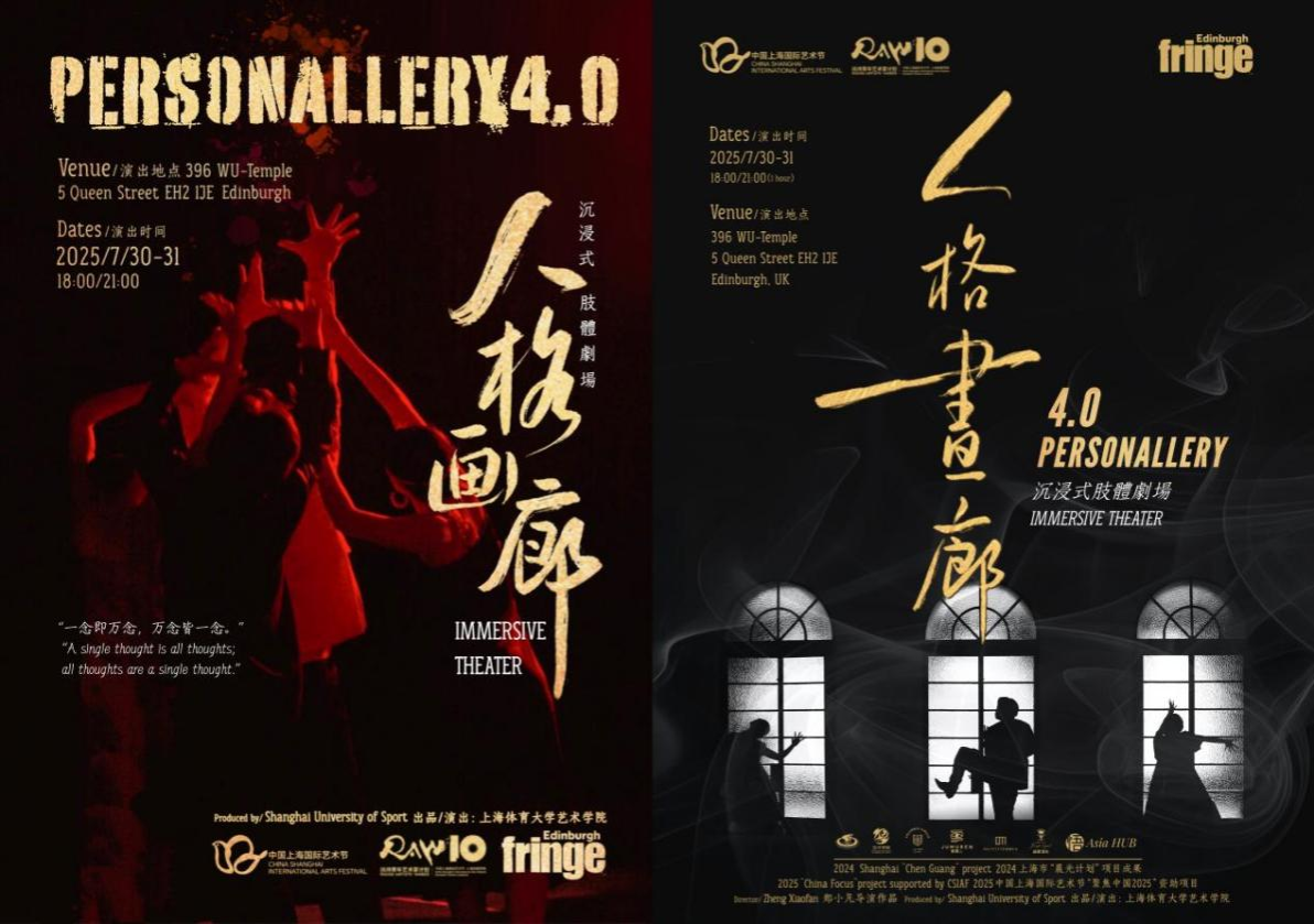 2025爱丁堡艺术节“聚焦中国”项目在中国文化和旅游部国际交流与合作局、上海市文化和旅游局、上海市人民政府新闻办公室、中国驻英国大使馆文化处及中国驻爱丁堡总领事馆的支持下,由中国上海国际艺术节中心承办。《人格画廊》系列作品已打磨多年,以国标舞(体育舞蹈)元素为基础,以国际化语言讲述中国故事。该系列早在2019年实验版就在英国伦敦上演;2023年,1.0版本入围麓湖环境戏剧周全国前十重点推荐作品;同年2.0版本引入人工智能技术共建,并入围上海文广SMG LIVE沉浸式艺术节IMMERSIVE X“摆渡计划”;2024年3.0版本在各方面继续优化升级再上台阶,成为第二十三届中国上海国际艺术节“扶持青年艺术家计划”委约项目,凭借成熟创作框架与对文化融合的探索,经多轮专业评审,4.0版本最终入选今年爱丁堡艺术节“聚焦中国2025”板块。此次出海展演由jinnian金年会艺术学院韩春英院长为团长、作品导演郑小凡老师带队。全体创作团队的辛勤付出,是顺利演出的坚实保证。