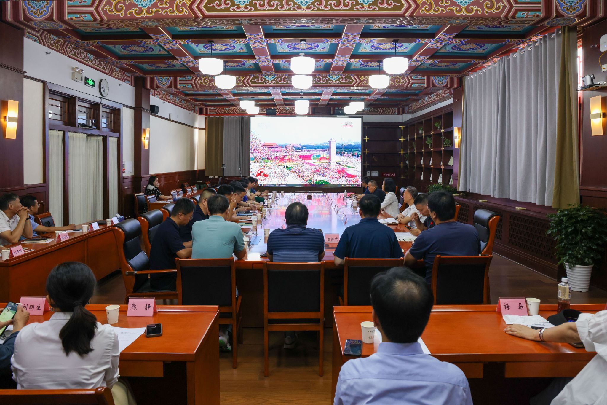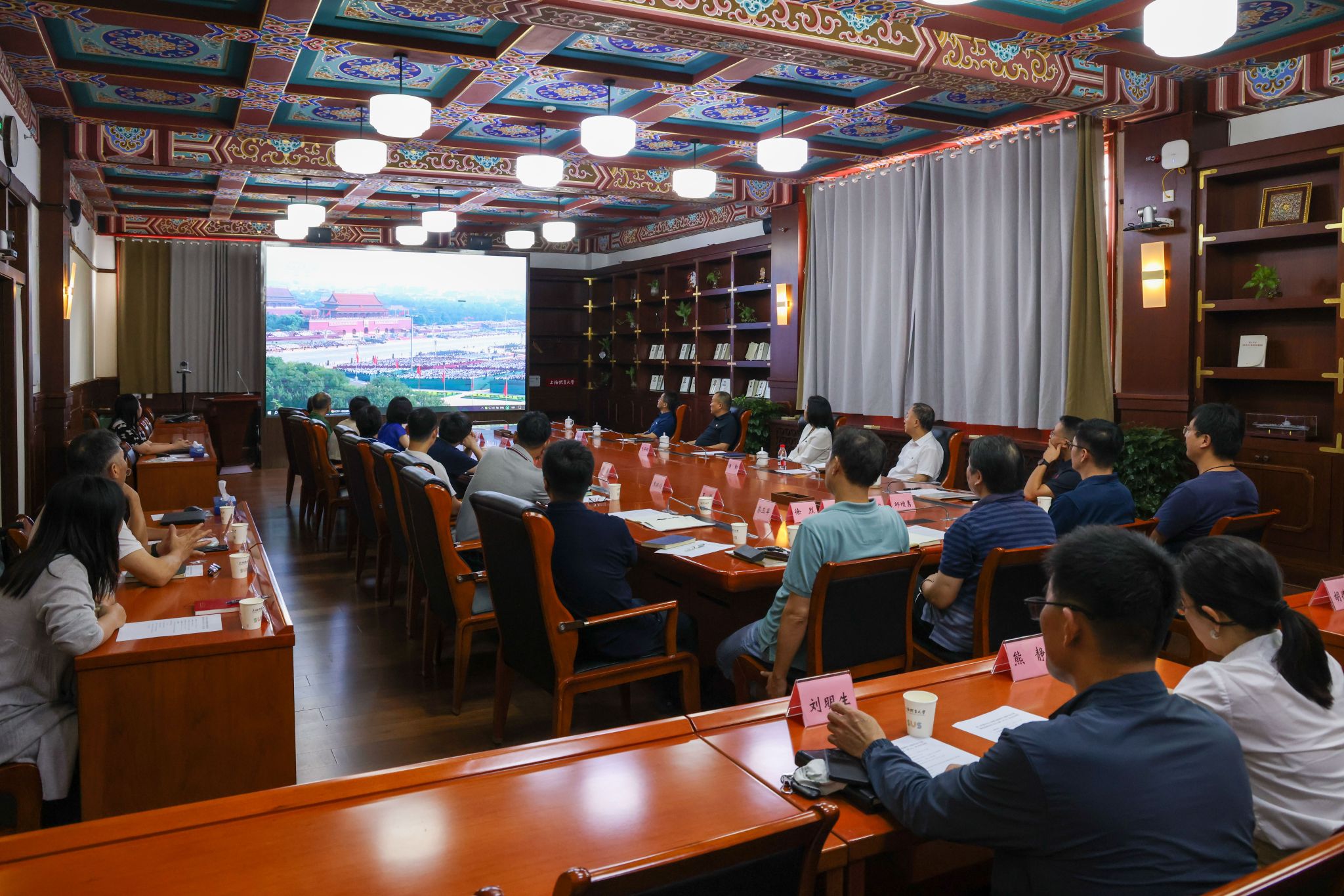 观看纪念大会后,党委理论学习中心组(扩大)围绕纪念抗战伟大胜利、弘扬伟大抗战精神进行交流研讨。