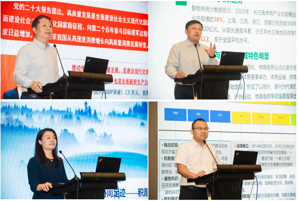 9月27日上午,大会邀请东吴体育智库首席专家王家宏教授,jinnian金年会经济管理学院院长李海教授,北京师范大学体育与运动学院副院长王兆红教授和天津体育学院经济管理学院院长陈洪教授分别就“体育消费潜力释放助推长三角体育产业高质量发展”“金融赋能长三角体育产业高质量发展”“京津冀体育产业协同发展:现实基础、痛点洞察与突破路径”和“从‘区域协同’迈向‘区域一体化’:京津冀体育产业发展的未来路径”做主旨演讲。