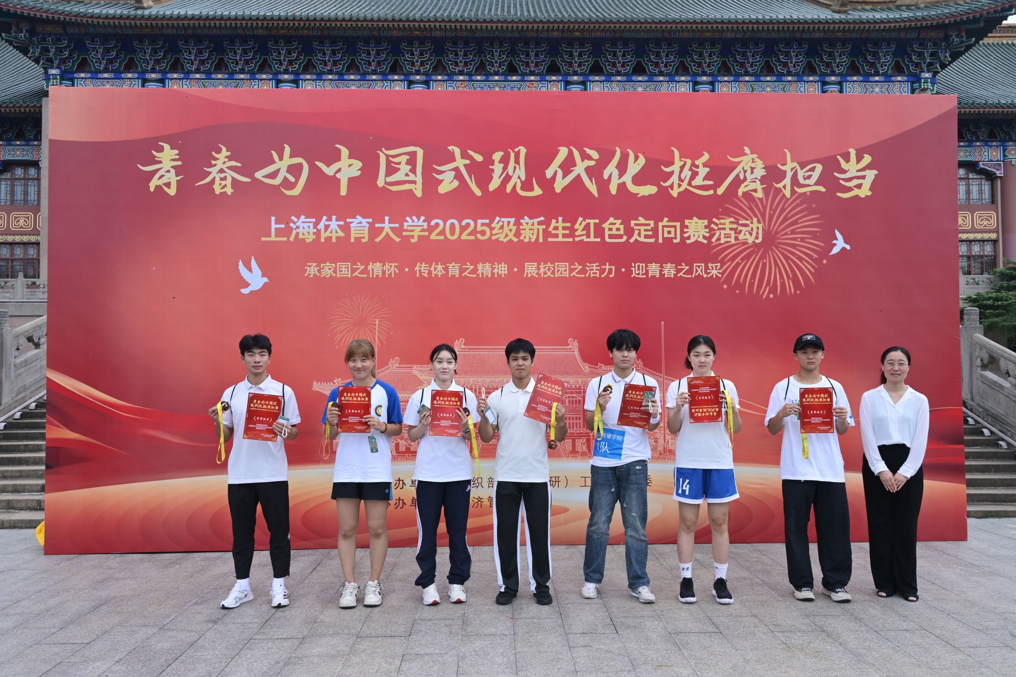 经过一个半小时紧张刺激的激烈角逐,最终中乒一队、体教二队、竞技二队、武术三队、新传一队、运康二队和经管二队凭借出色的表现荣获“活力青春队”称号。而竞技二队凭借最短用时,脱颖而出,夺得“红耀青春队”的殊荣。