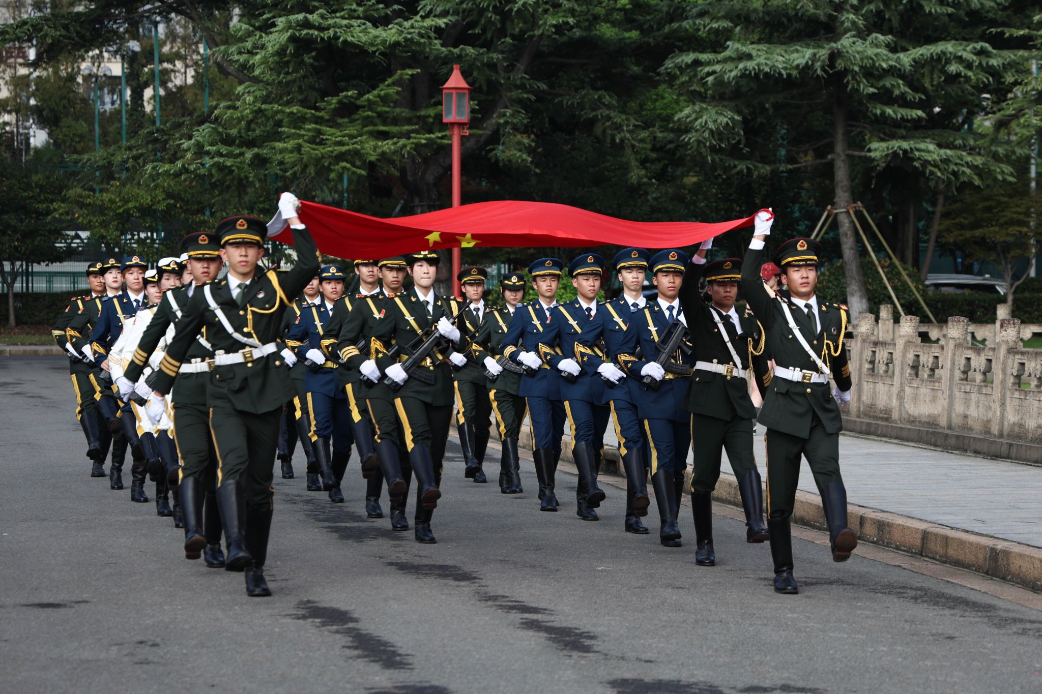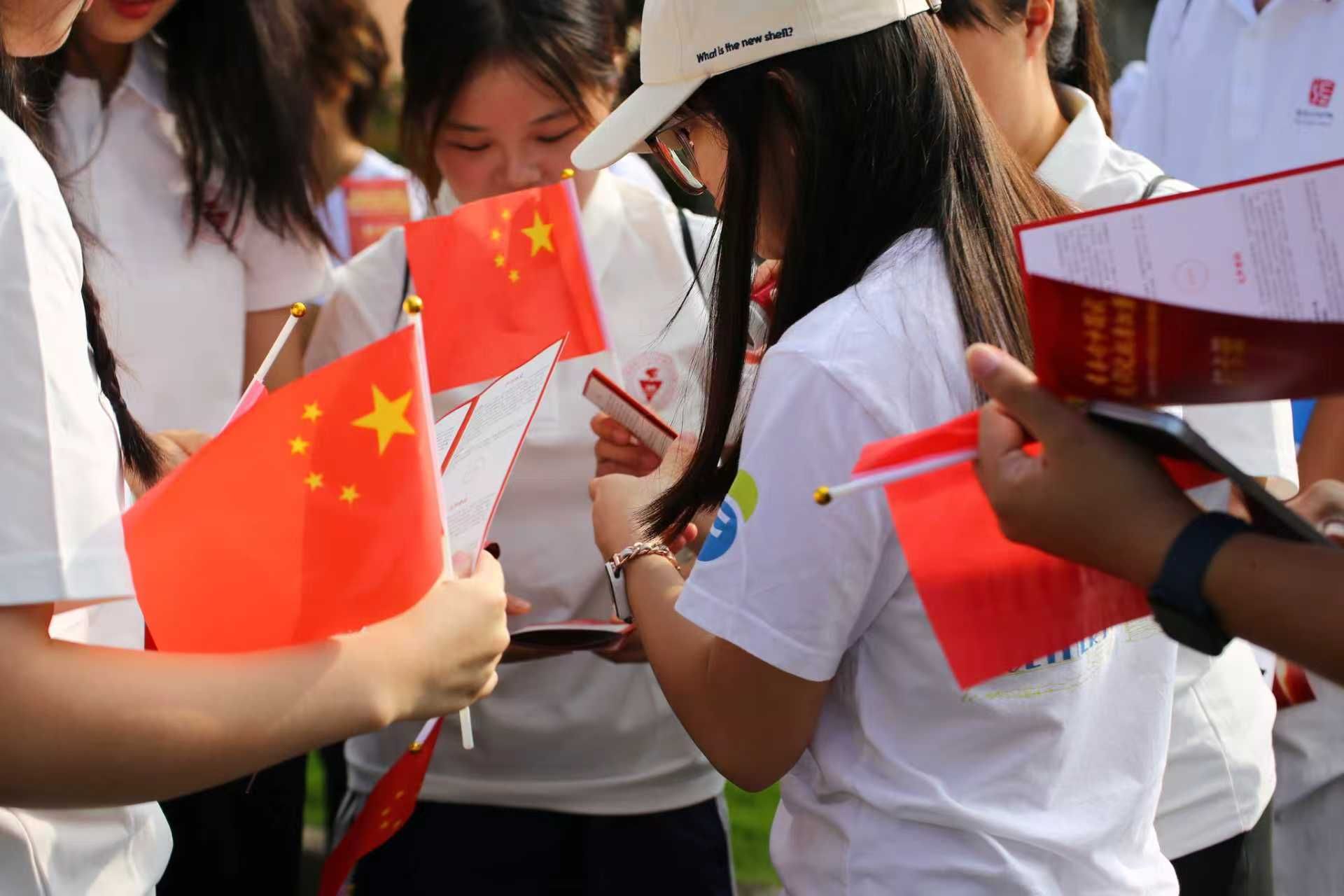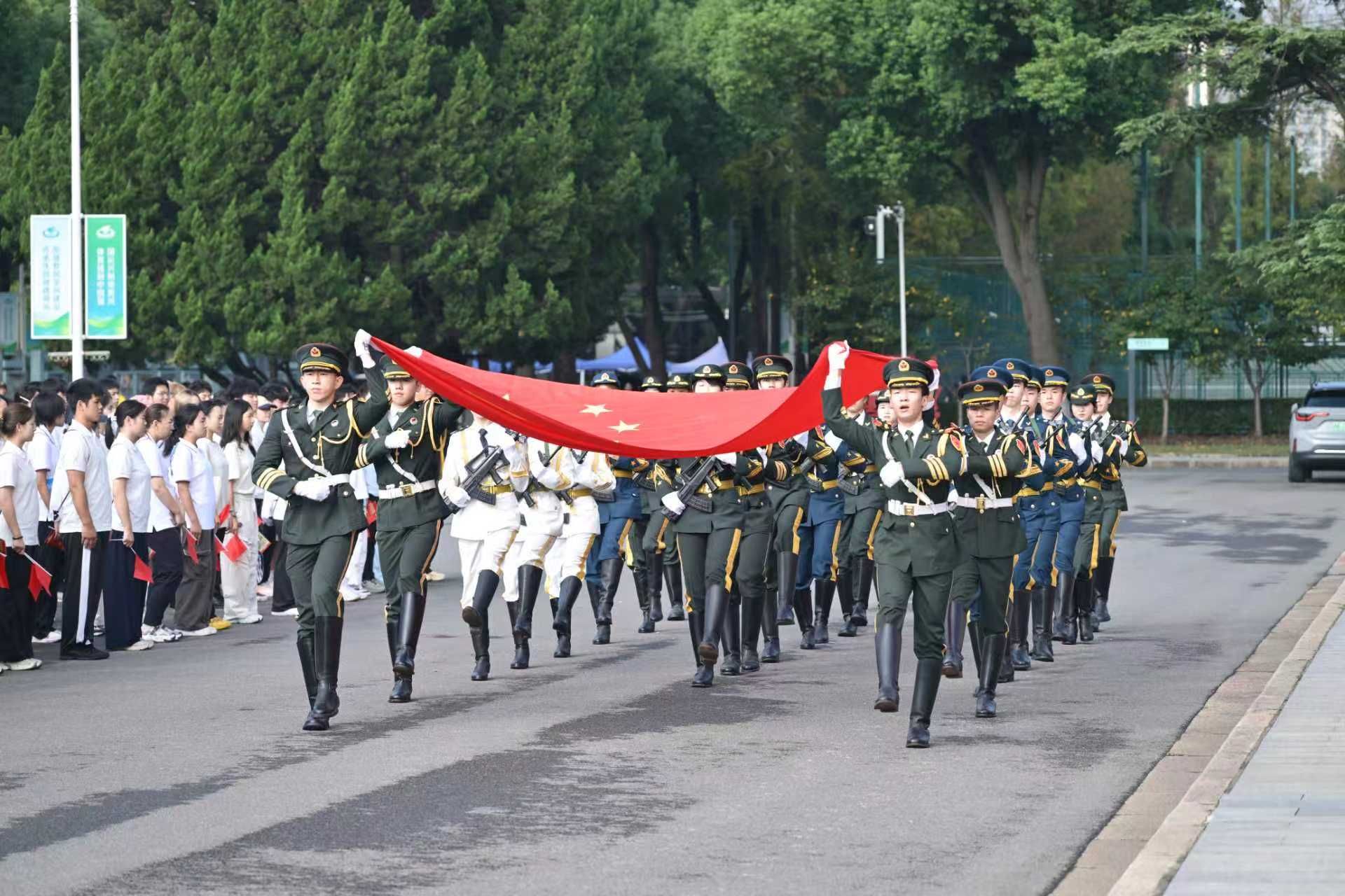 上午8时30分,国旗护卫队身姿挺拔、步伐铿锵,护送着鲜艳的五星红旗稳步迈向升旗台。在激昂雄壮的国歌声中,全体师生庄严肃立,目光紧紧追随那飘扬的国旗,齐声高唱中华人民共和国国歌。此刻,每个人的心中都满溢着对伟大祖国的无限敬仰与美好祝福,共同为中华人民共和国76岁华诞献上最诚挚的礼赞。