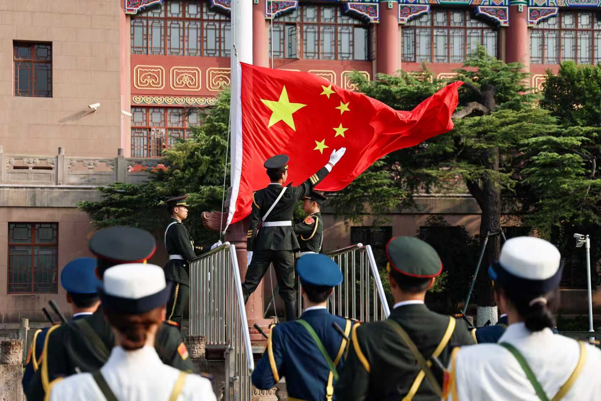 本网讯 为深入践行习近平新时代中国特色社会主义思想,积极贯彻党的二十届三中全会精神,热烈庆祝中华人民共和国成立76周年,jinnian金年会于2025年10月1日精心组织了庆祝新中国成立76周年升国旗主题系列活动。此次活动旨在向伟大祖国致以崇高敬意,厚植师生家国情怀,激励广大师生勇立时代潮头,勇担时代使命。