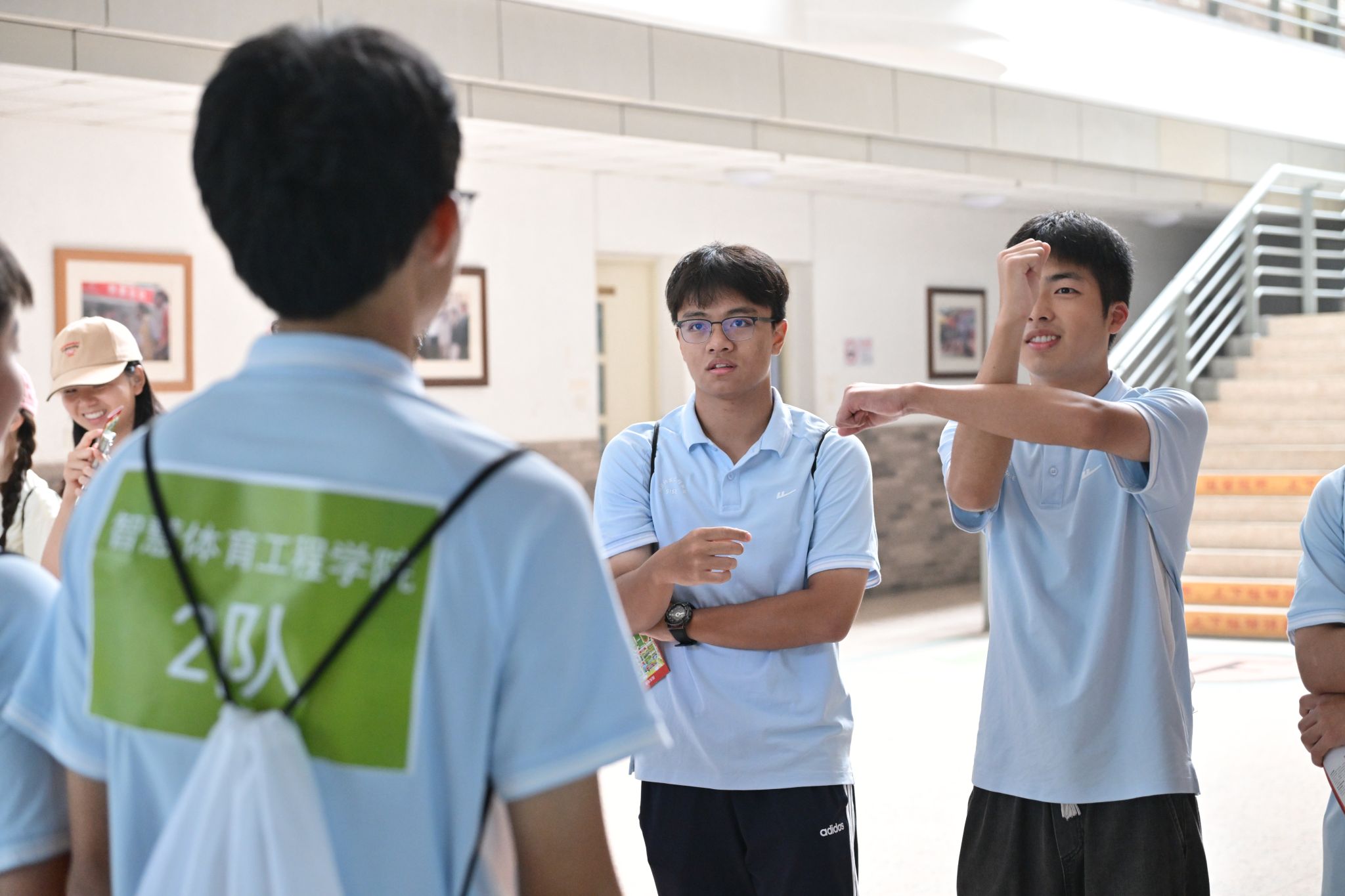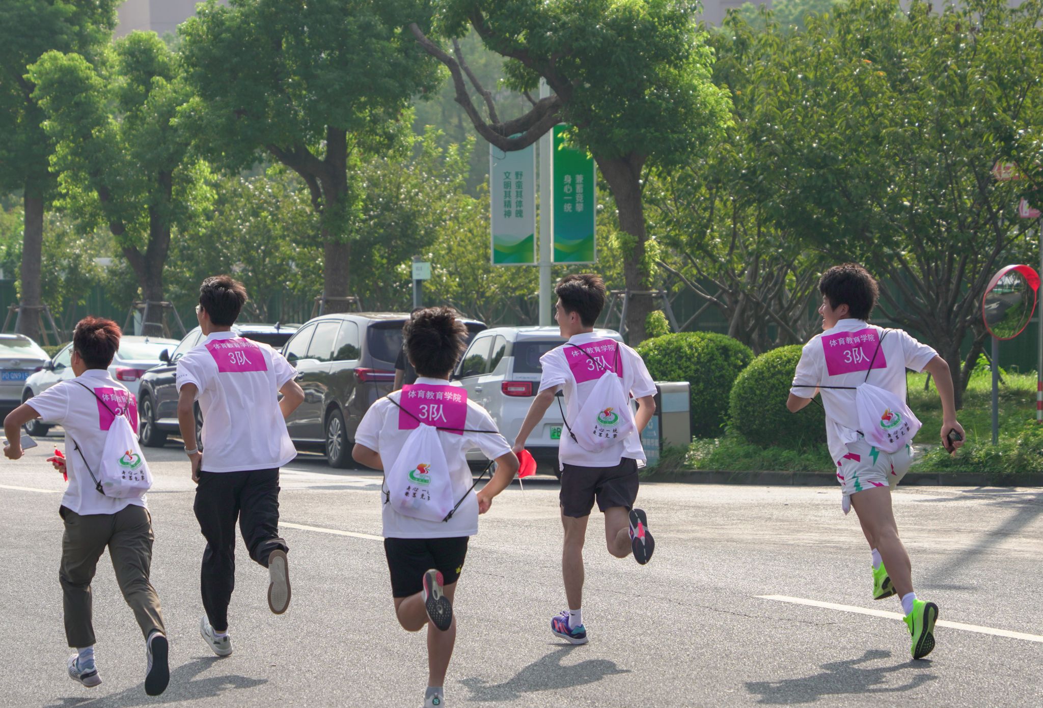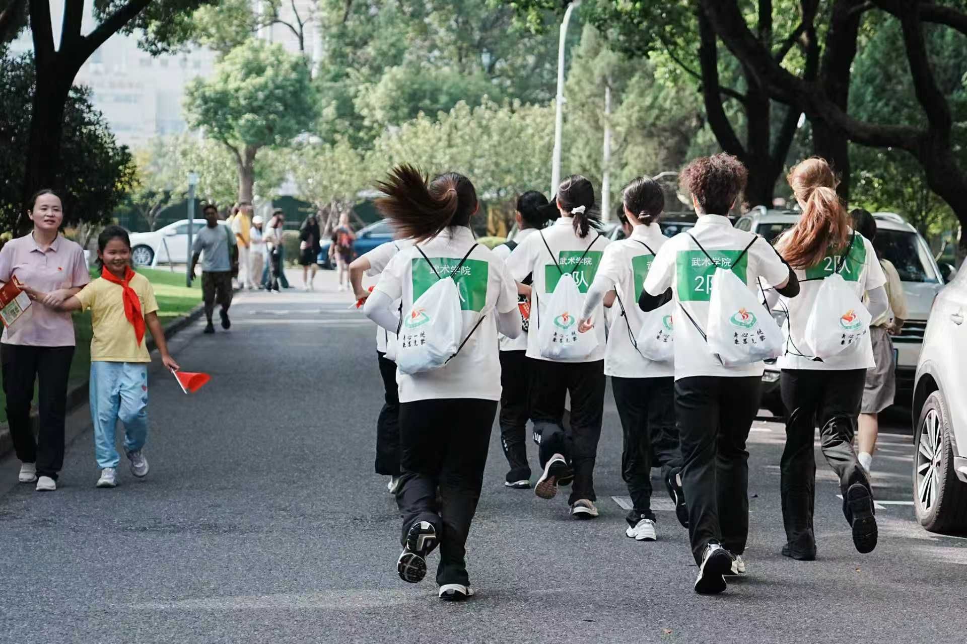 升旗仪式结束后,红色定向赛正式激情开赛。绿瓦广场、室内田径场、风雨篮球场、新教学楼、老教学楼等校园标志性地点,成为了22支来自各二级学院新生队伍的“战场”。他们团结一心、携手共进,在各个活动场馆间穿梭奔忙,全身心投入到紧张激烈的比赛之中。