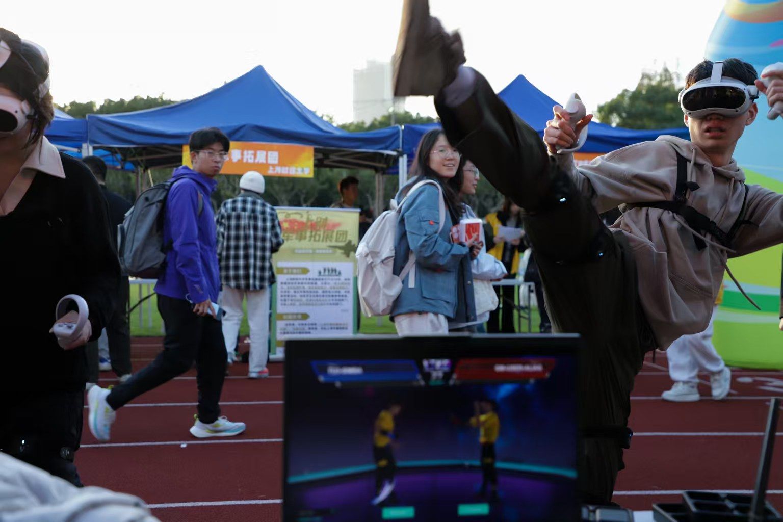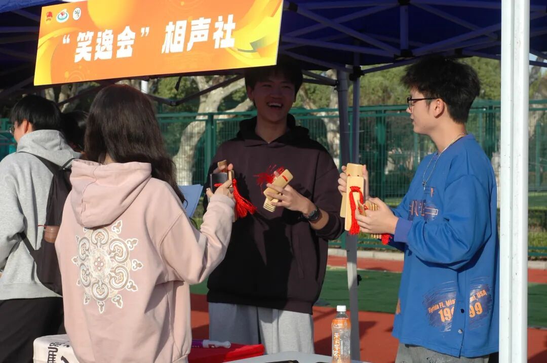 与此同时,青春市集区域同样人气爆棚。本次青春市集不仅保留了传统交易摊位,还特别增设趣味互动区域,设置包括校史知识问答、运动闯关等游戏在内的七大集章打卡点,“好玩+好逛”,同学们手持集章卡,穿梭于各大摊位前,在闯关的过程中感受体育嘉年华的别样魅力。