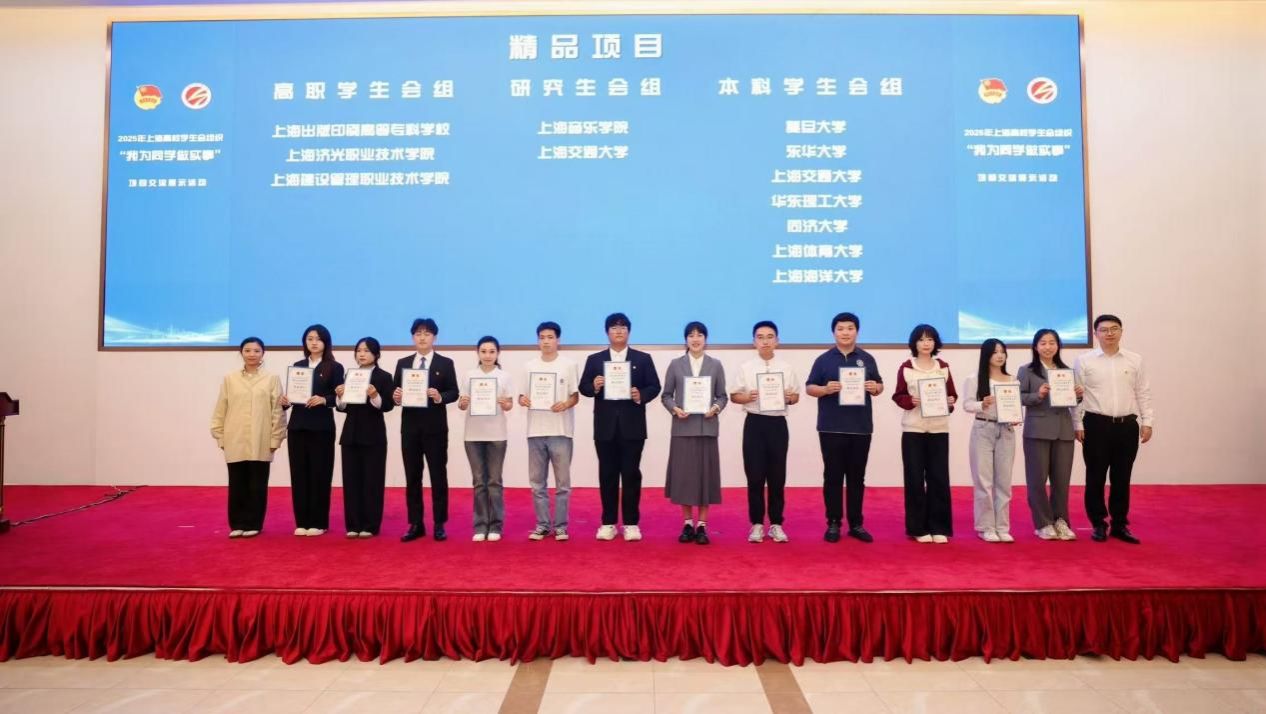 本网讯 为进一步推动学联学生会聚焦主责主业、服务同学成长发展,10月19日,2025年上海高校学生会组织“我为同学做实事”项目交流展示活动在上海理工大学举行,来自全市70所高校的近200名师生参加了活动。前期,经校级推荐和市级初评,遴选产生了普通高校研究生会组、本科院校学生会组、职业院校学生会组三个组别共24个优秀项目进行现场路演。经现场路演角逐,我校学生会“‘人人参与·悦动健康’——打造全方位、多维度校园体育服务生态”项目荣获“精品项目”称号。