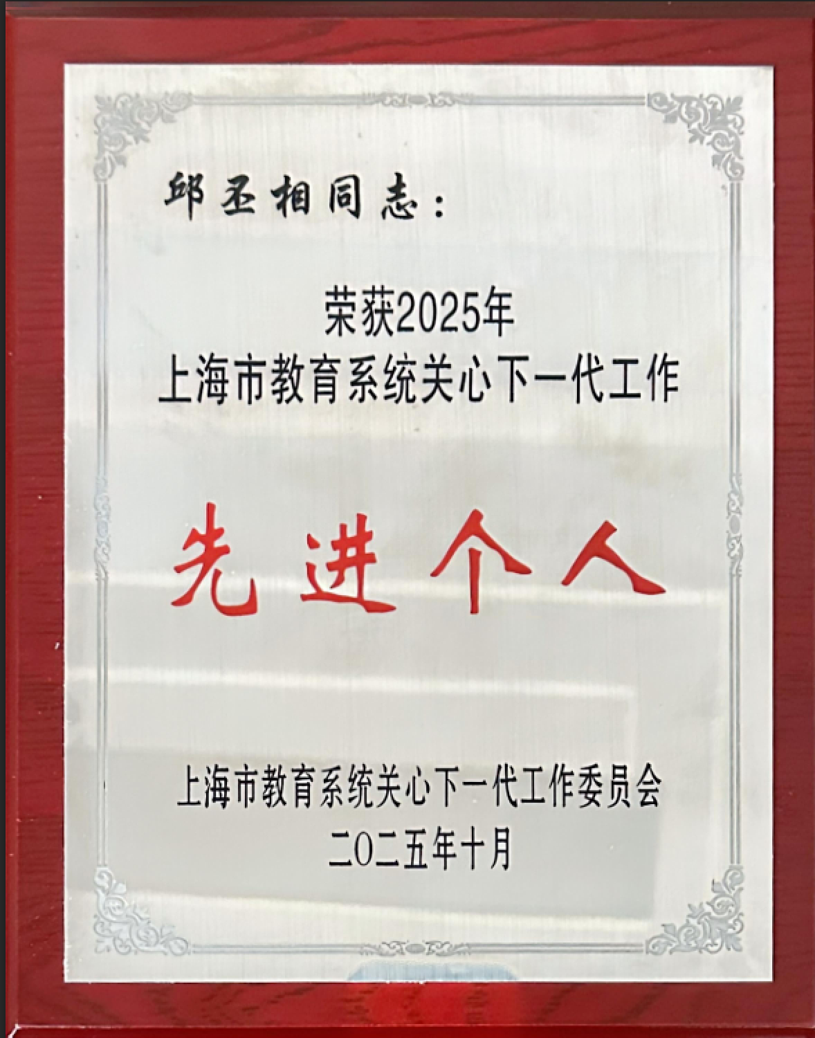 我校党委副书记潘勤、上海市教育系统关工委邱丕相工作室负责人、我校退休教授邱丕相出席大会。我校关工委荣获2025年上海市教育系统关心下一代工作先进集体荣誉,邱丕相教授获得2025年上海市教育系统关心下一代工作先进个人称号。