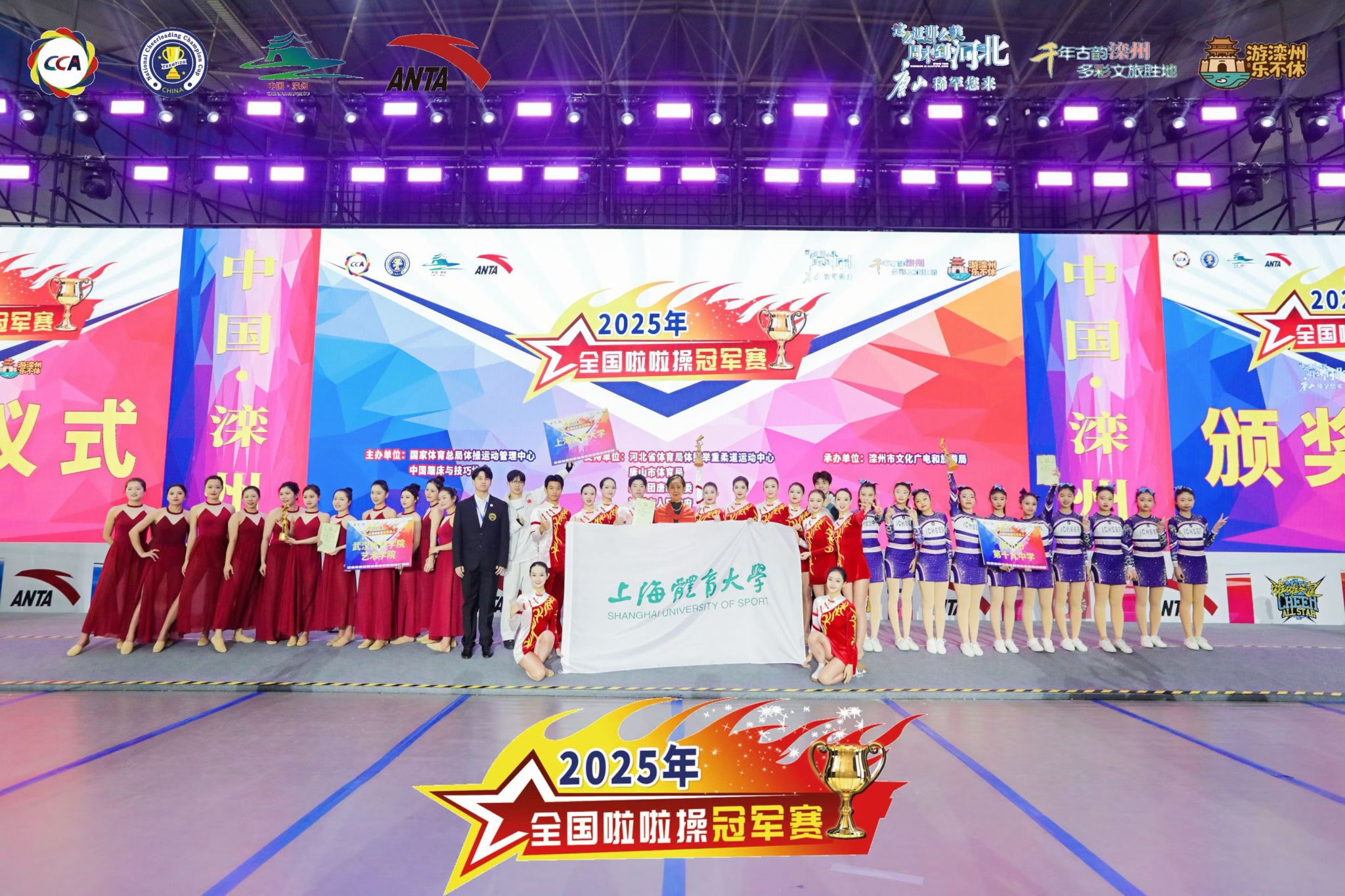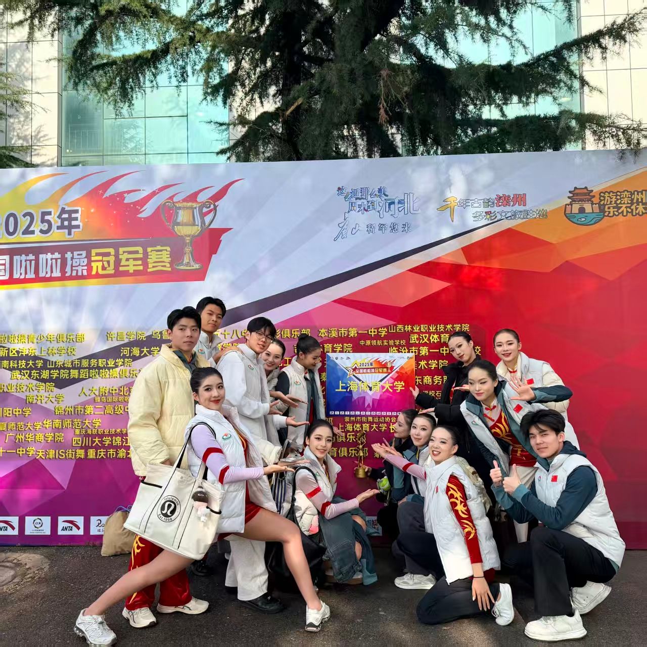 本网讯 2025年10月28日至31日,全国啦啦操冠军赛于河北唐山滦州体育中心隆重举行。来自全国20余个省市的百余支顶尖队伍齐聚一堂,展开为期四天的激烈角逐。我校啦啦队历经一个多月的高强度集训,在新老队员的默契协作与教练韩春英的悉心引领下,最终斩获公开青年甲组集体爵士冠军、集体花球第四名的优异成绩,以汗水与实力共同书写了团队荣耀的新篇章!