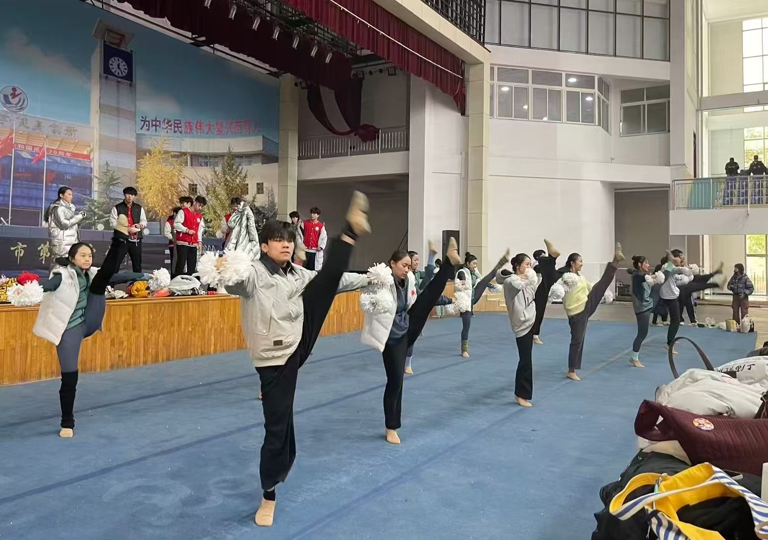 自9月中旬起,无论是工作日午间还是周末午后,训练场上总能看到队员们全力备战的身影——那是他们雷打不动的“成长战场”。这支由15名队员组成的队伍中,既有身经百战的“老将”,也有初登大赛的“新兵”。为了精进动作细节,老队员主动传授经验,逐帧带领新队员拆解技术;新队员则满怀热情,利用课余时间加练柔韧与力量。短短一个多月,全队在技术与默契上实现显著突破。