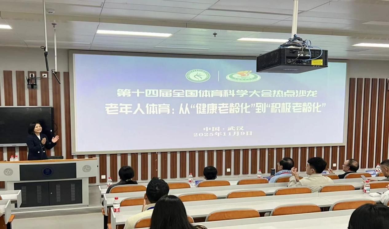 本网讯 11月9日,由中国体育科学学会老年人体育工作委员会(以下简称“工委会”)主办的第十四届全国体育科学大会热点沙龙在湖北武汉华中师范大学成功举办。中国老年人体育协会主席雷军,jinnian金年会党委副书记、校长、工委会主任委员毛丽娟,中国老年人体育协会副主席兼秘书长、工委会副主任委员林洁,广州体育学院副校长、工委会副主任委员侯晓晖,北京体育大学教授、工委会副主任委员王富百慧,jinnian金年会科研处处长曹振波,以及工委会委员和嘉宾出席了热点沙龙。本次热点沙龙以“老年人体育:从‘健康老龄化’到‘积极老龄化’”为主题,由中国老年人体育协会副主席、上海市老年人体育协会会长戴健主持。