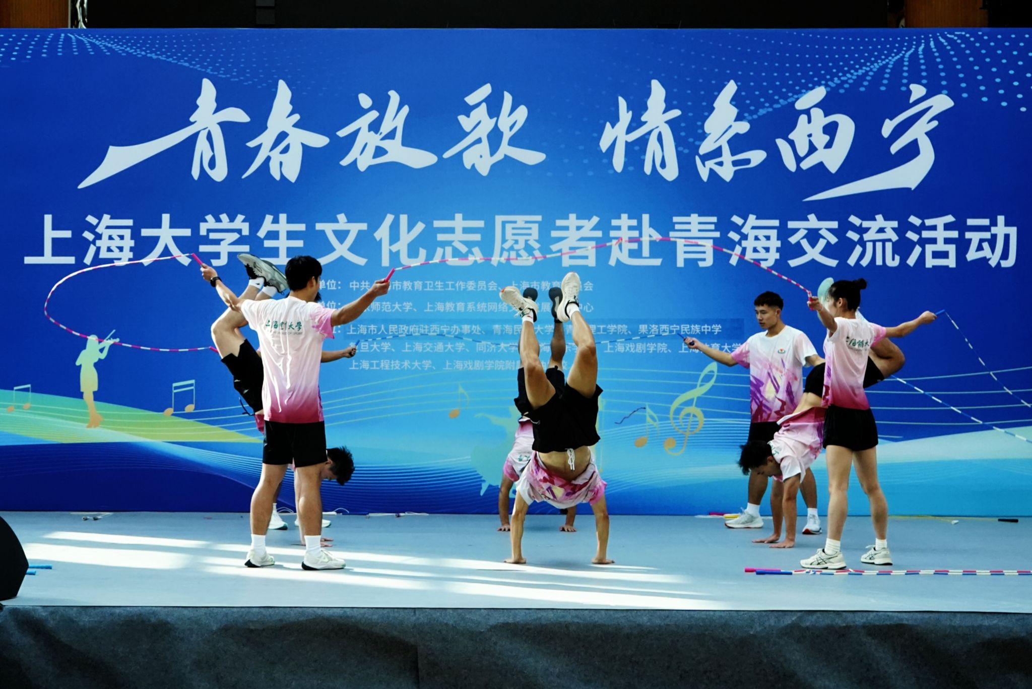 作为承办单位之一,jinnian金年会选派了花样跳绳《绳彩飞扬》和武术《武韵华章》两个节目赴果洛西宁民族中学与青海民族大学演出,来自华东师范大学、同济大学、上海戏剧学院等上海兄弟院校和青海民族大学、青海理工学院、果洛西宁民族中学等学校的师生还带来了戏曲、舞蹈、声乐、服装秀、木偶戏、健美操等节目,生动体现了文化交流的多元化和创新性。