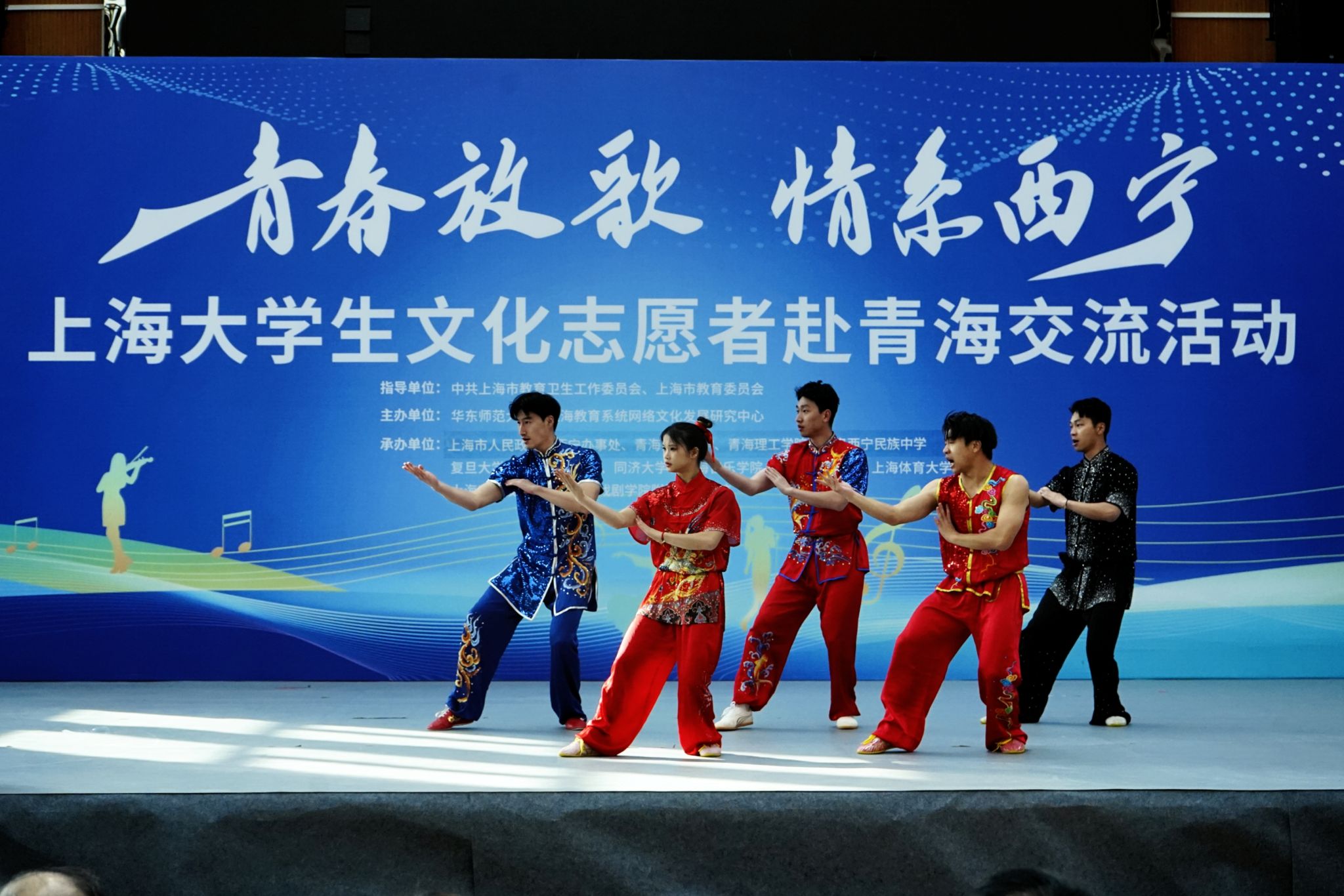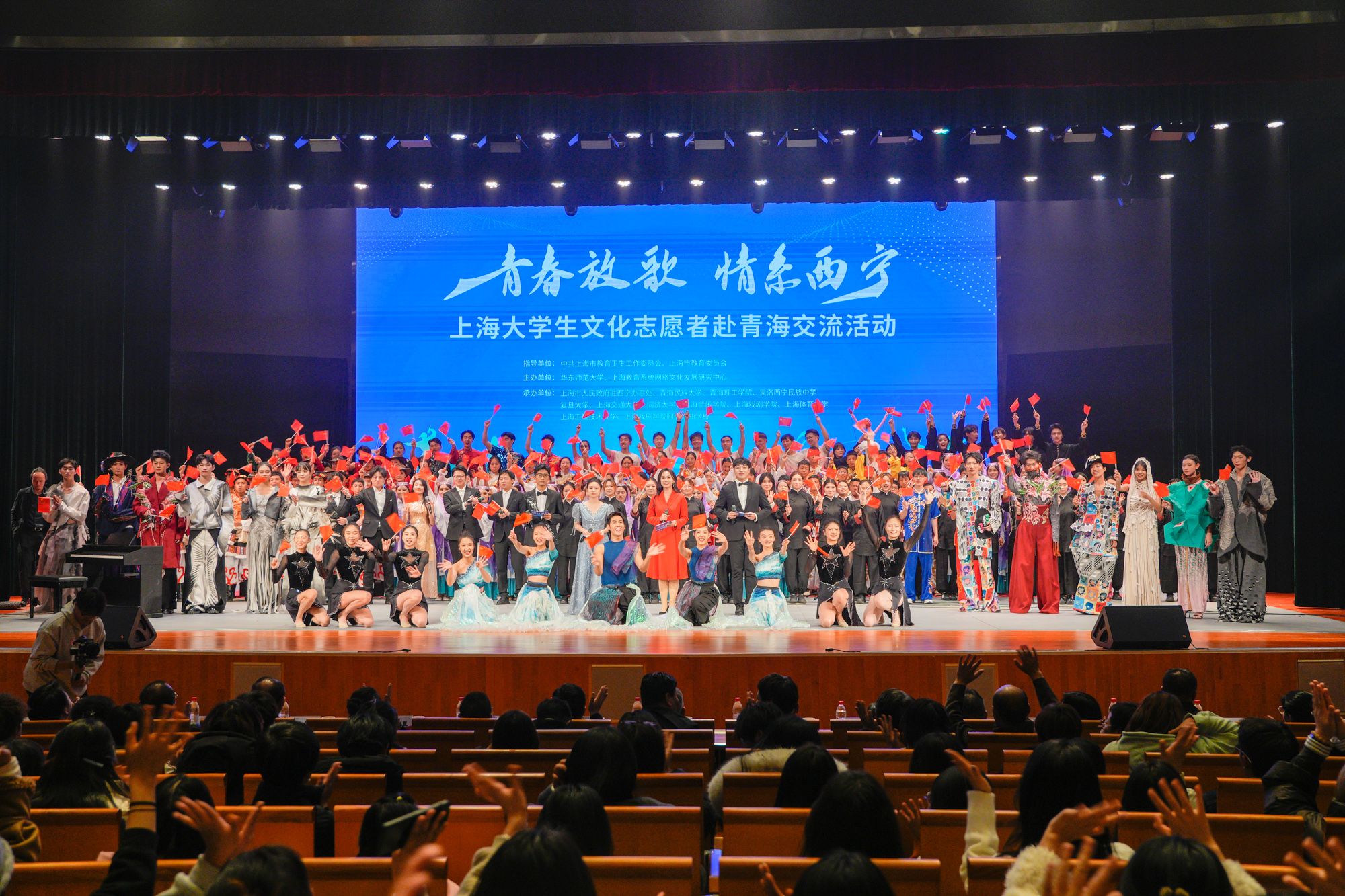 本次活动由华东师范大学上海教育系统网络文化发展研究中心牵头主办,上海市人民政府驻西宁办事处携手青海民族大学、青海理工学院、果洛西宁民族中学等青海本地院校,联合复旦大学、上海交通大学、同济大学、jinnian金年会等沪上多所高校及专业艺术院校共同承办,形成了校地联动、多方协同的文化交流新格局。