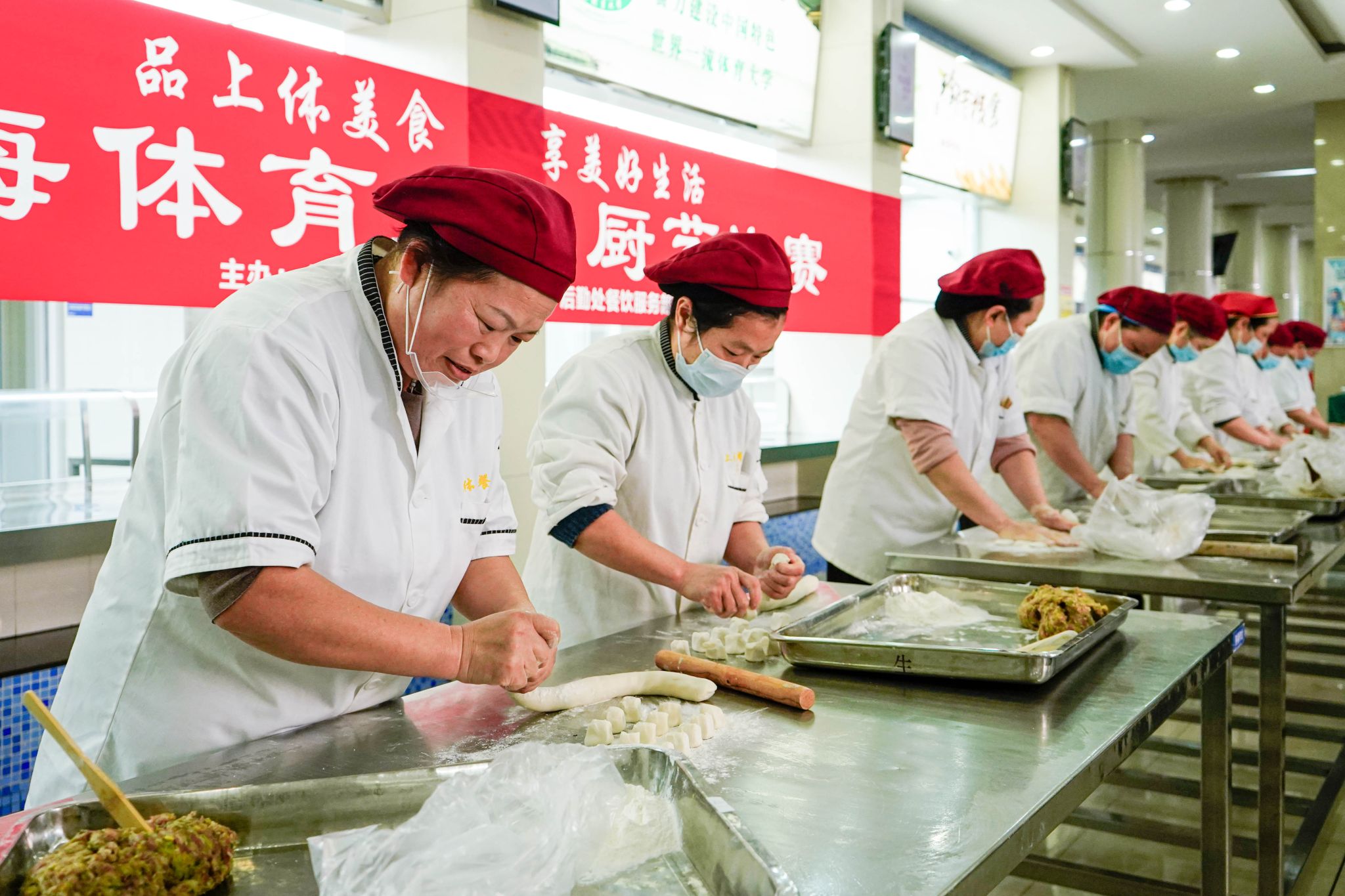 选手们严格遵循比赛规程和操作规范,争分夺秒,和面、揉面、捏褶、出成品,香菇菜包、白菜大肉水饺饱满匀称、表皮光滑、皱褶均匀。土豆丝似牙签状、整齐划一,不连刀。大排大小、厚薄匀称,与比赛限定克数几乎毫厘不差,充分展现了选手们娴熟的刀工。