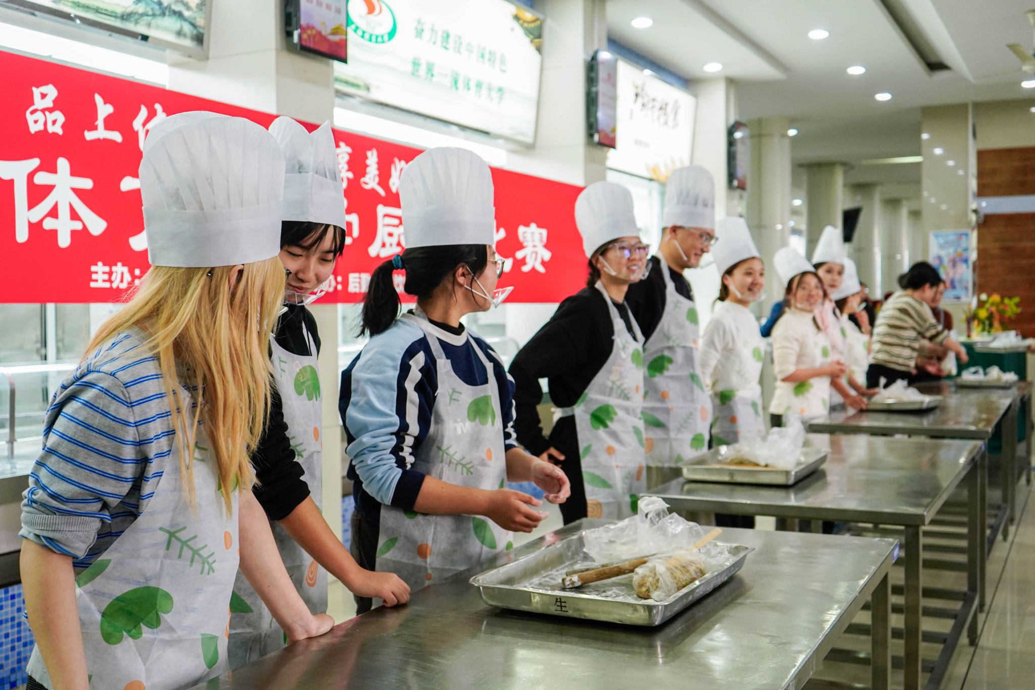 评委从“色、香、味、形、意、创新”等多维度对参赛作品进行综合品评打分。最终评选出每个单项共13名优胜者,并由嘉宾代表为其现场颁奖。所有参赛的自选菜肴作品全部呈现在活动现场供应区域,学生、教职工共享劳动成果。
