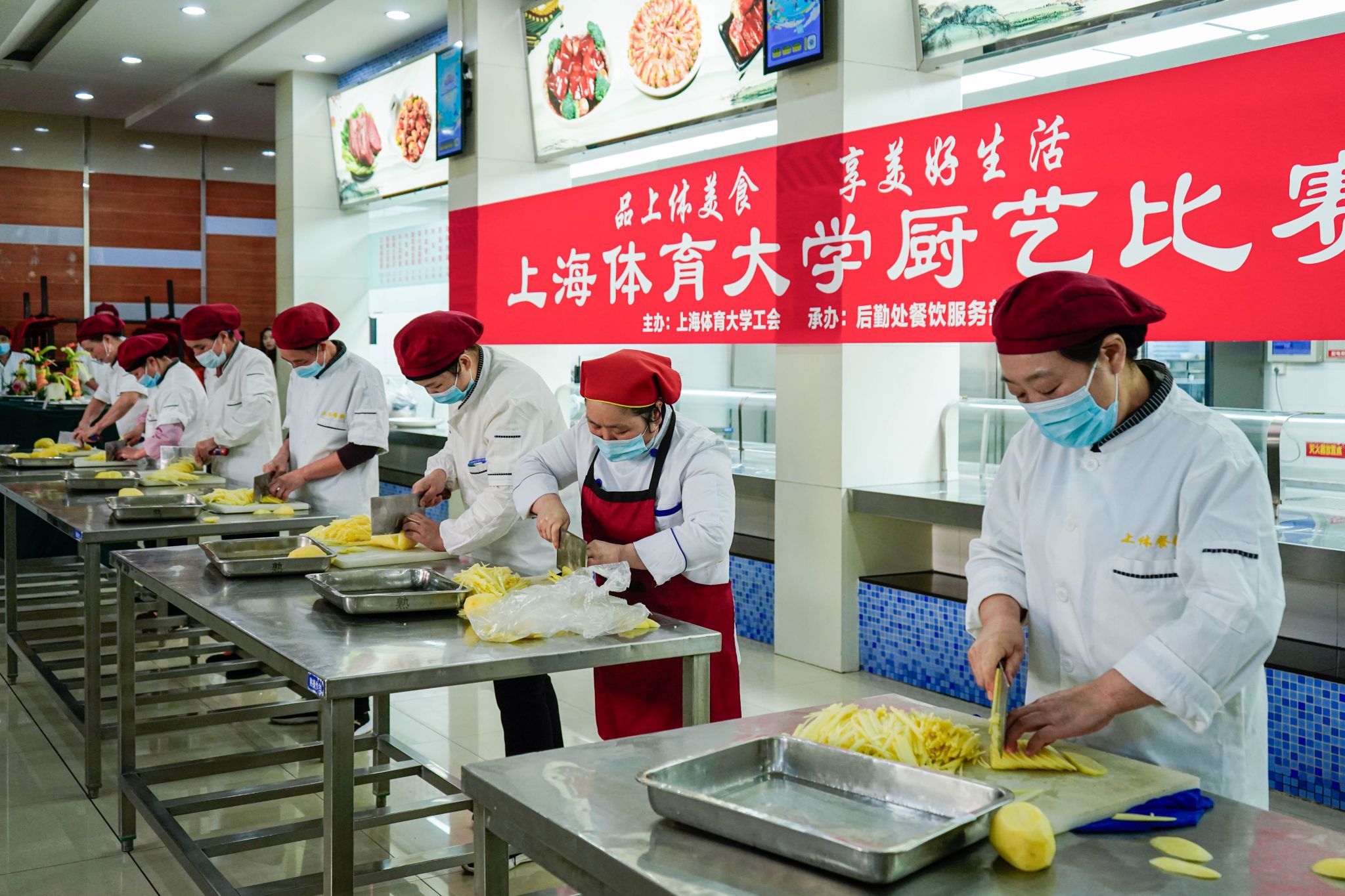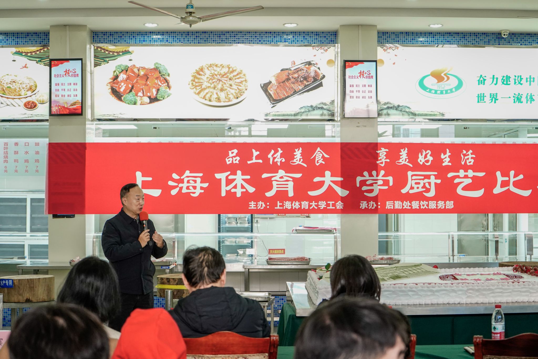 党委副书记潘勤为活动致辞。后勤处依托其服务理念,打造了契合体育院校特色的劳动教育课程,让同学们在体验传统技艺中感受文化之美与劳动价值,实现“食育”与育人深度融合。本次比赛既是技能的展示,也是餐饮人对师生的承诺。餐饮人要在比拼中展风采,在交流中促提升,为建设更加温暖、更加专业的上体后勤继续贡献力量。