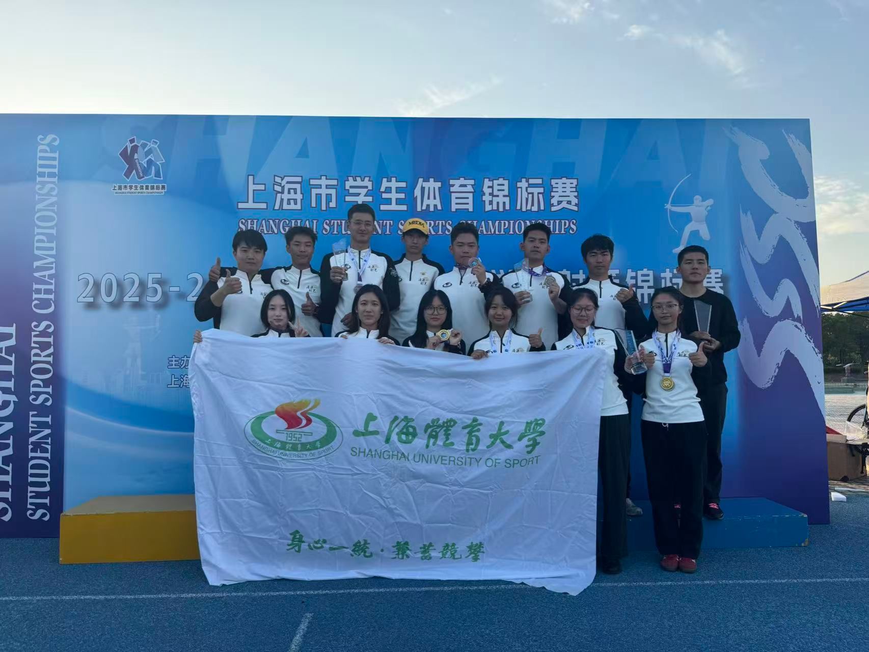 我校射艺队始终以“身心一统,兼蓄竞攀”的校训精神为指引,不仅注重竞技技能的提升,更强调传统射艺文化的传承,在训练中融入射礼规范与修身理念,让队员们在动静之间涵养君子品格,体悟中华优秀传统文化的深厚底蕴。此次征战上海市大学生锦标赛,队员们不仅用奖牌证明了自身实力,更在与各高校选手的交流切磋中,推动了传统射艺文化的传播与发展。我院将以赛事为契机,培养更多兼具竞技实力与文化素养的新时代传统体育人才,让射艺等中华优秀传统体育文化在校园中焕发持久的活力。