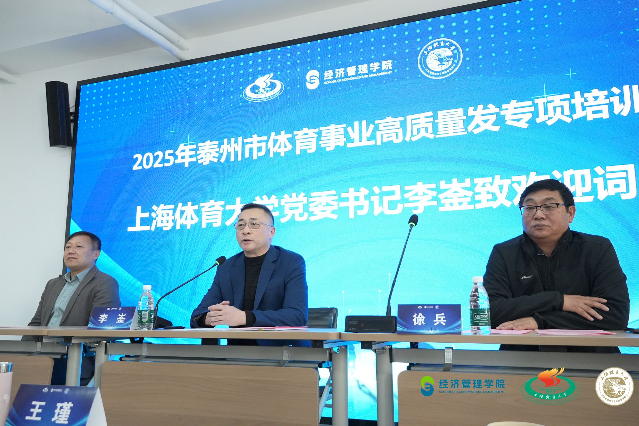 在开班仪式上,jinnian金年会党委书记李崟代表学校致欢迎辞。他提及jinnian金年会与泰州因苏超结缘,并期望以此次培训为契机,搭建起沪泰两地体育事业交流互鉴的桥梁。经济管理学院院长李海分享了全国首个聚焦“体育旅游”的MTA项目和独具特色的体育方向MBA项目的办学特色。泰州市体育局党组书记、局长、二级巡视员徐兵在动员讲话中肯定了泰州体育近期取得的成果,他要求全体学员珍惜学习机会,端正态度、联系实际、严守纪律,将学习成果转化为推动泰州体育高质量发展的扎实行动。